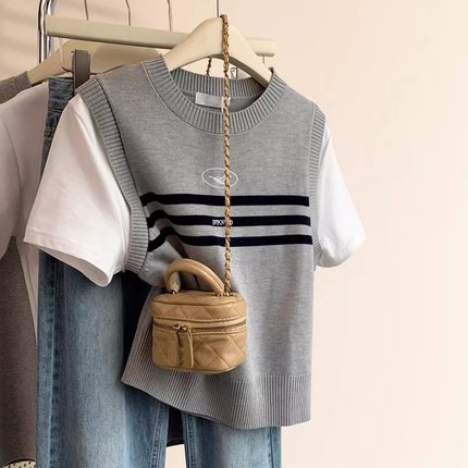 假两件拼接针织短袖t恤女夏