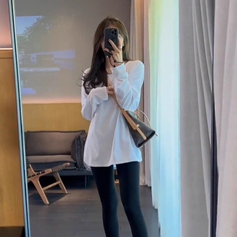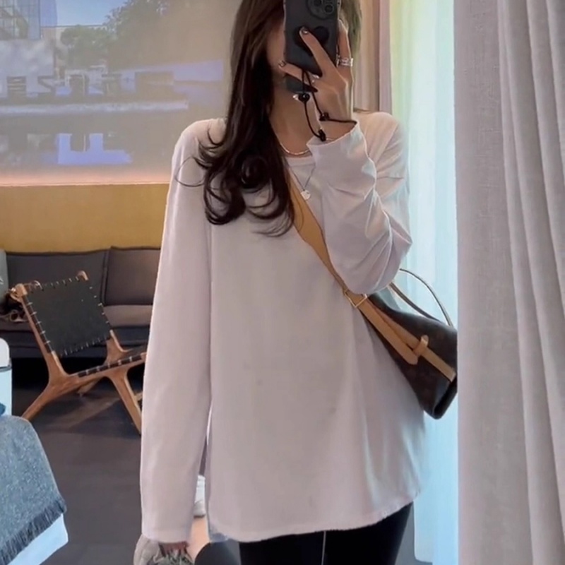 白色打底衫女内搭长款2025新款上衣春秋中长款纯棉小个子长袖t恤
