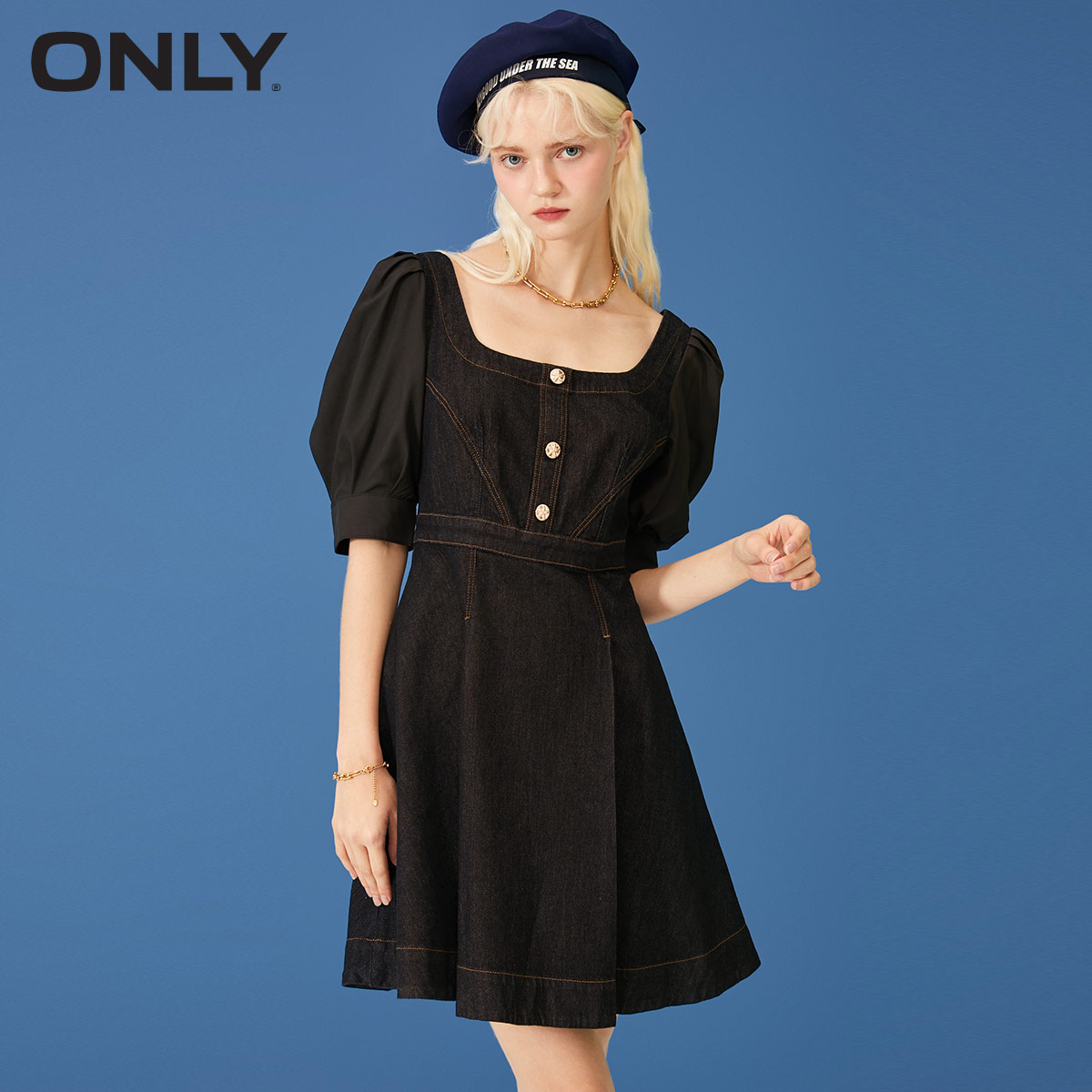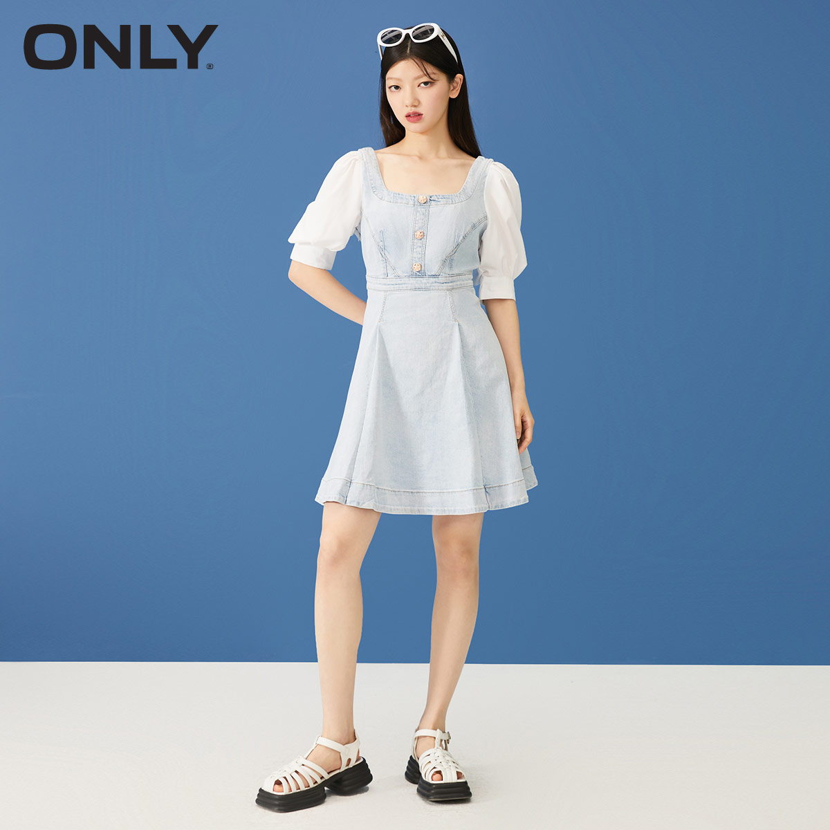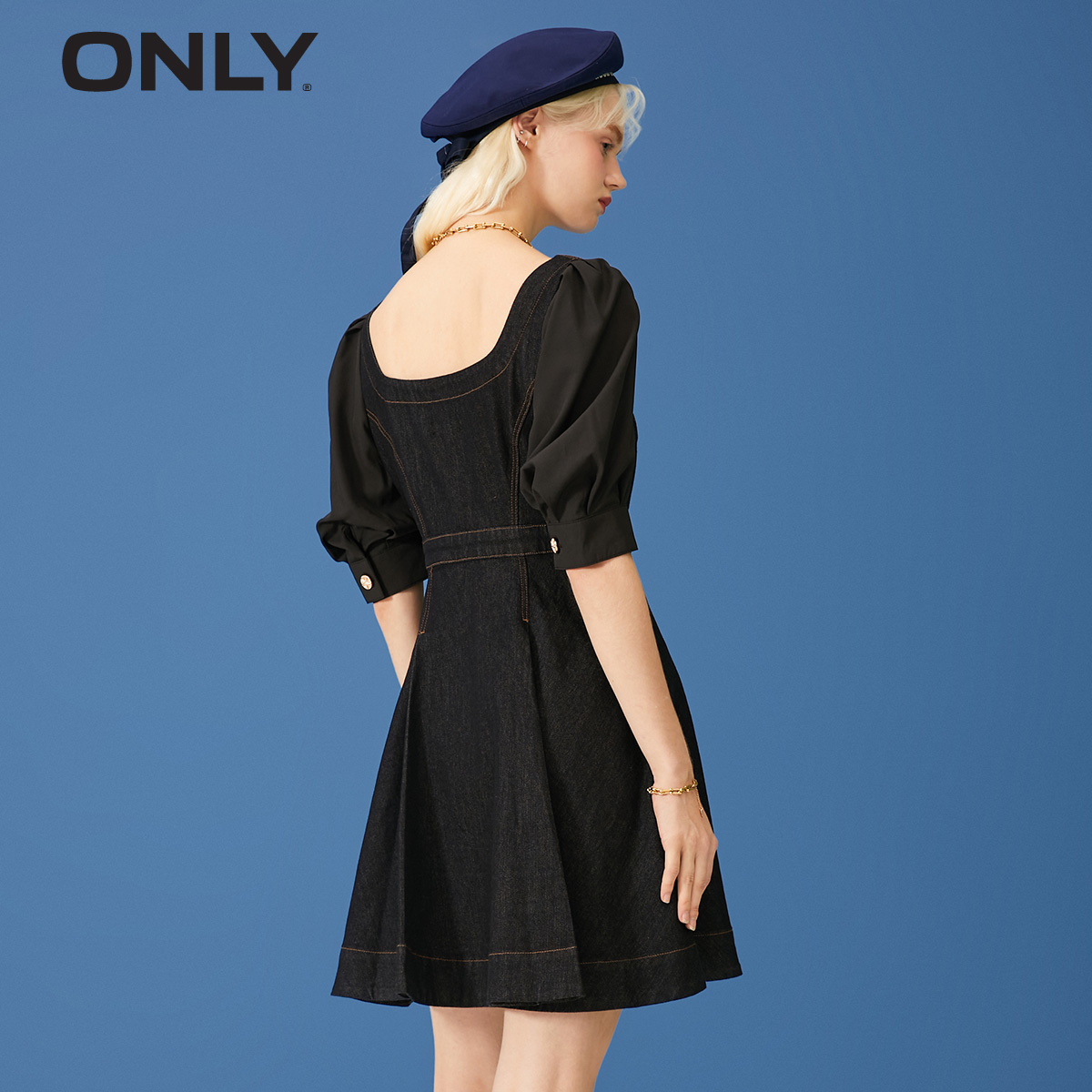 【ONLY奥莱】夏季法式方领高腰显瘦A字牛仔连衣裙女