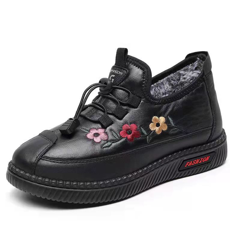 老北京布鞋冬季女棉鞋加绒厚底绣花妈妈鞋女士雪地靴一件代发