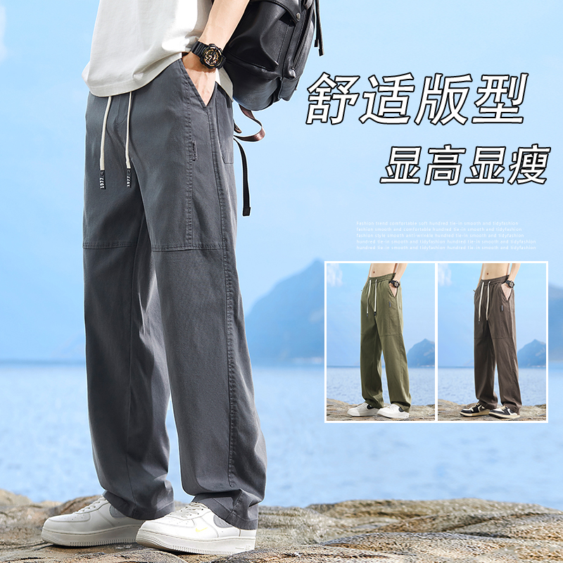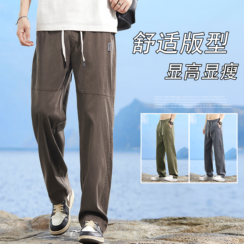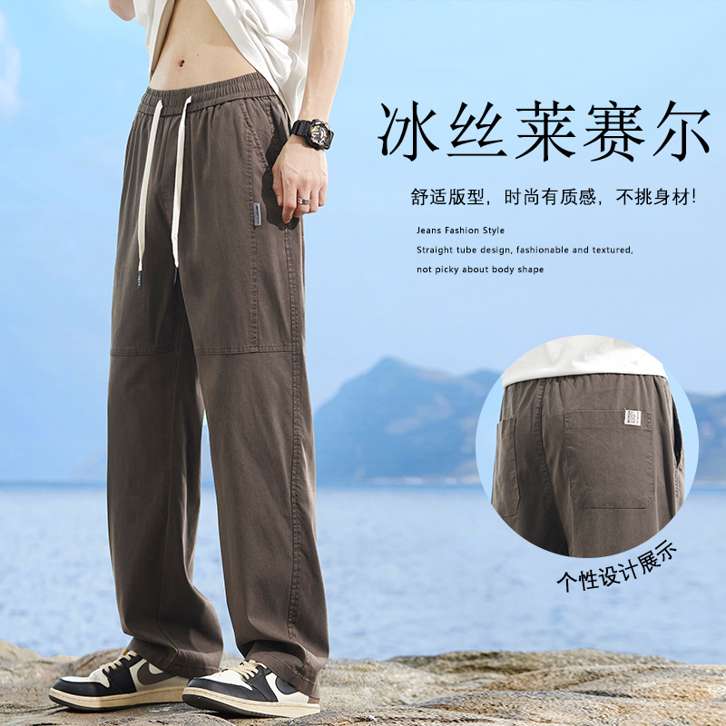 天丝休闲裤子男士夏季薄款宽松直筒裤潮流百搭夏天男生冰丝牛仔裤