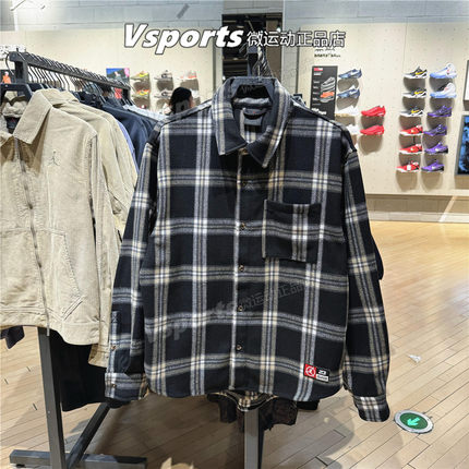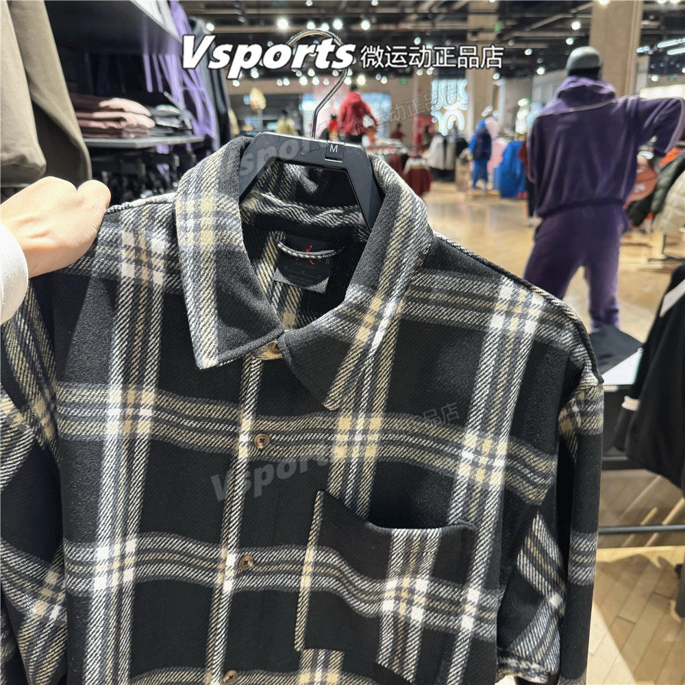 专柜正品JORDAN耐克外套男2026春篮球翻领长袖格子衬衫IB1904-010