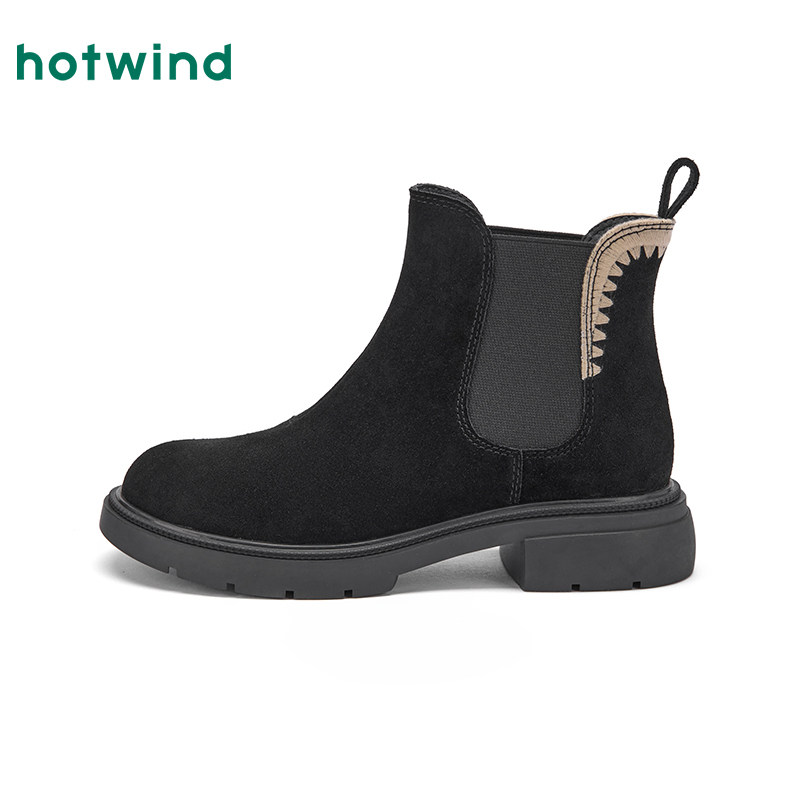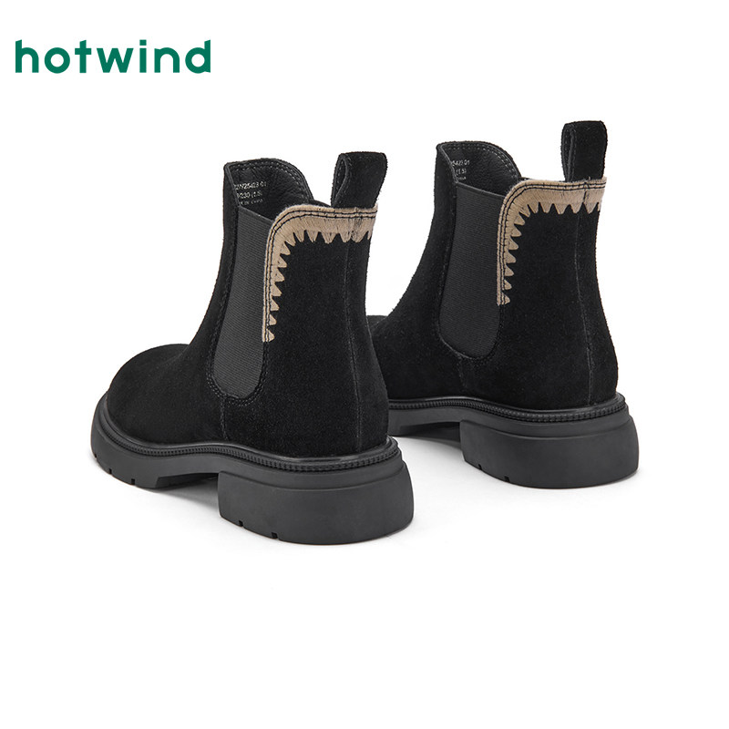 热风棕色时装靴女2025年冬季新款百搭马丁靴复古切尔西靴厚底靴子