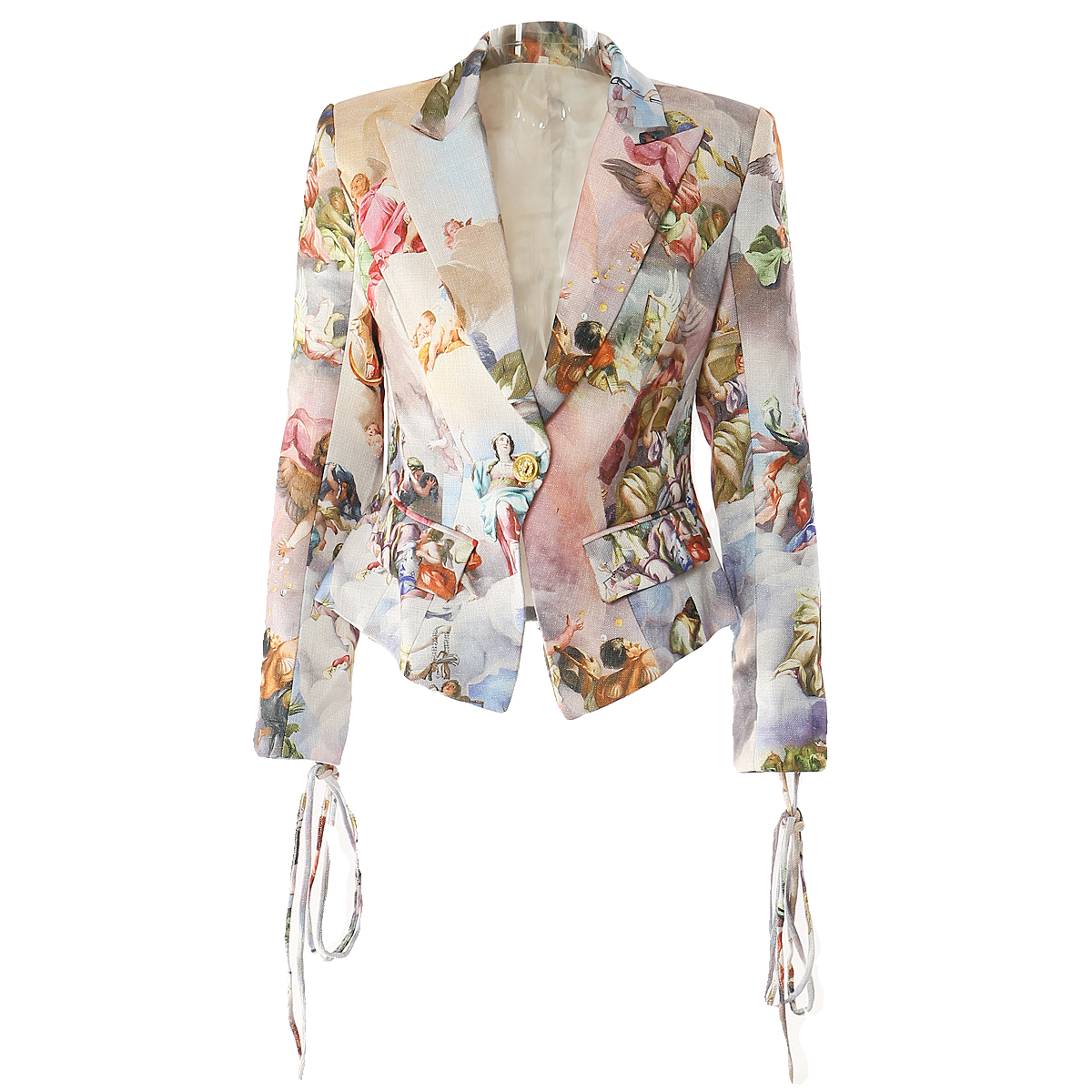 EAM STUDIO西方艺术印花设计感小西装外套女2024新款收腰气质西服