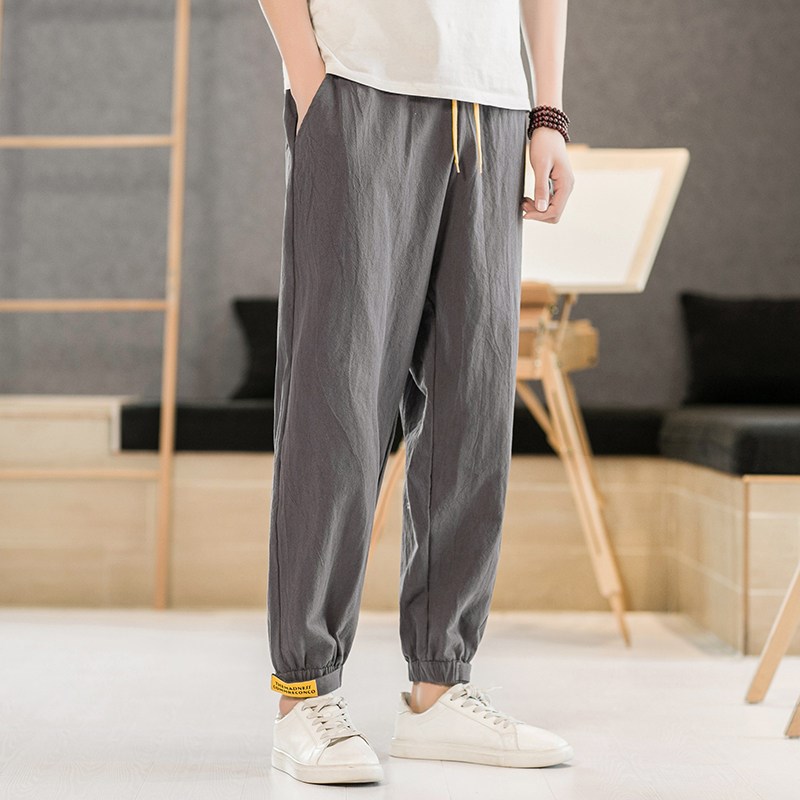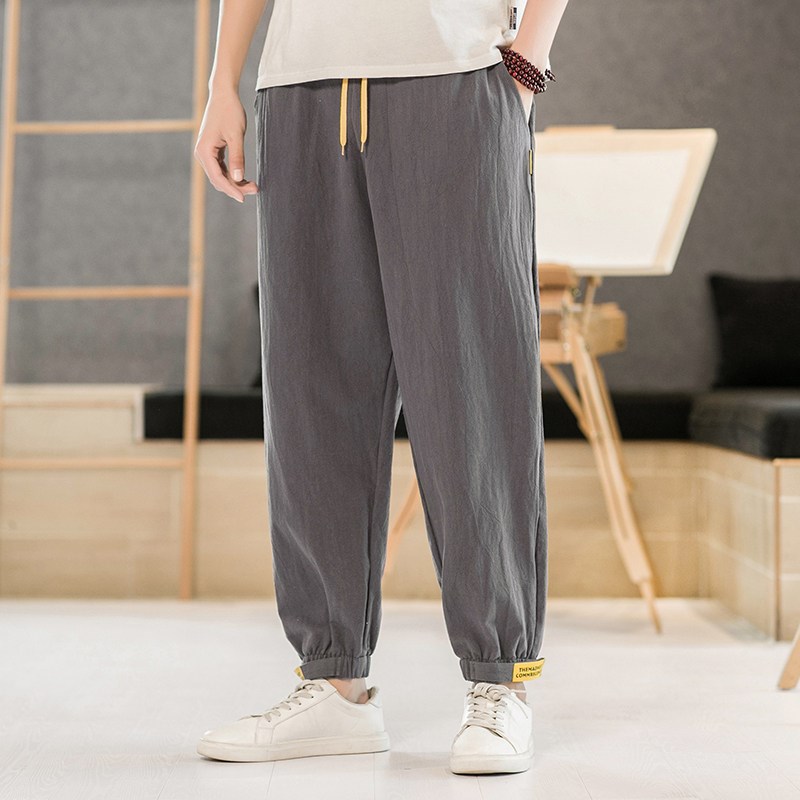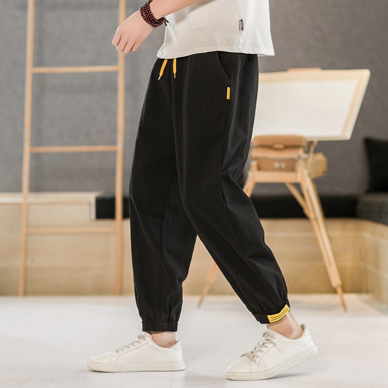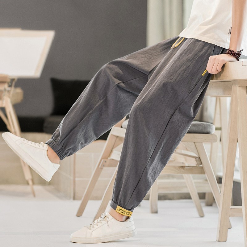 夏季薄款中国风男装大码九分哈伦裤子潮牌男士宽松束脚休闲灯笼裤