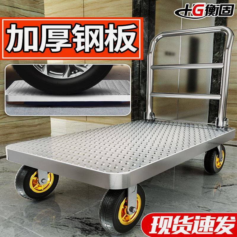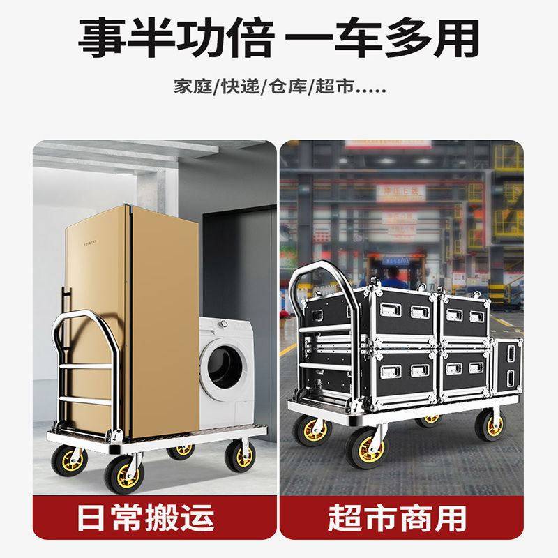 衡固加厚钢板小推车静音折叠拉货平板车家用四轮搬运车拖车小拉车