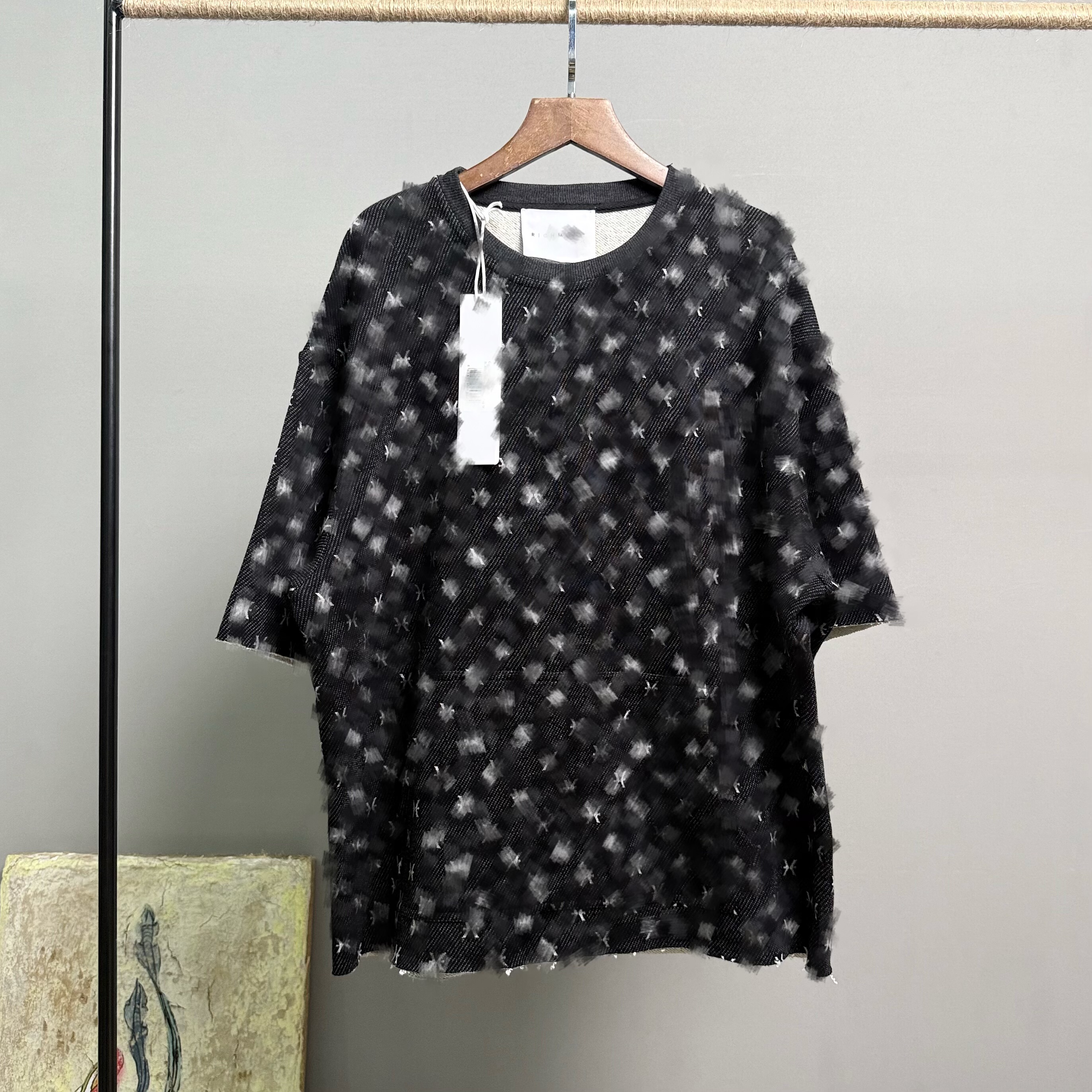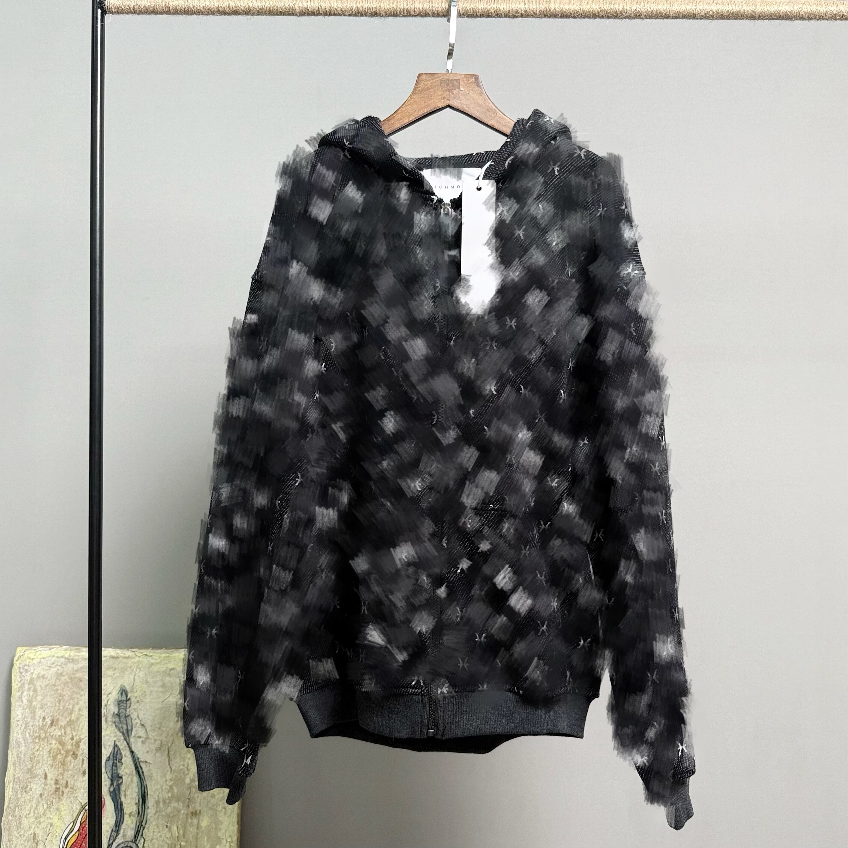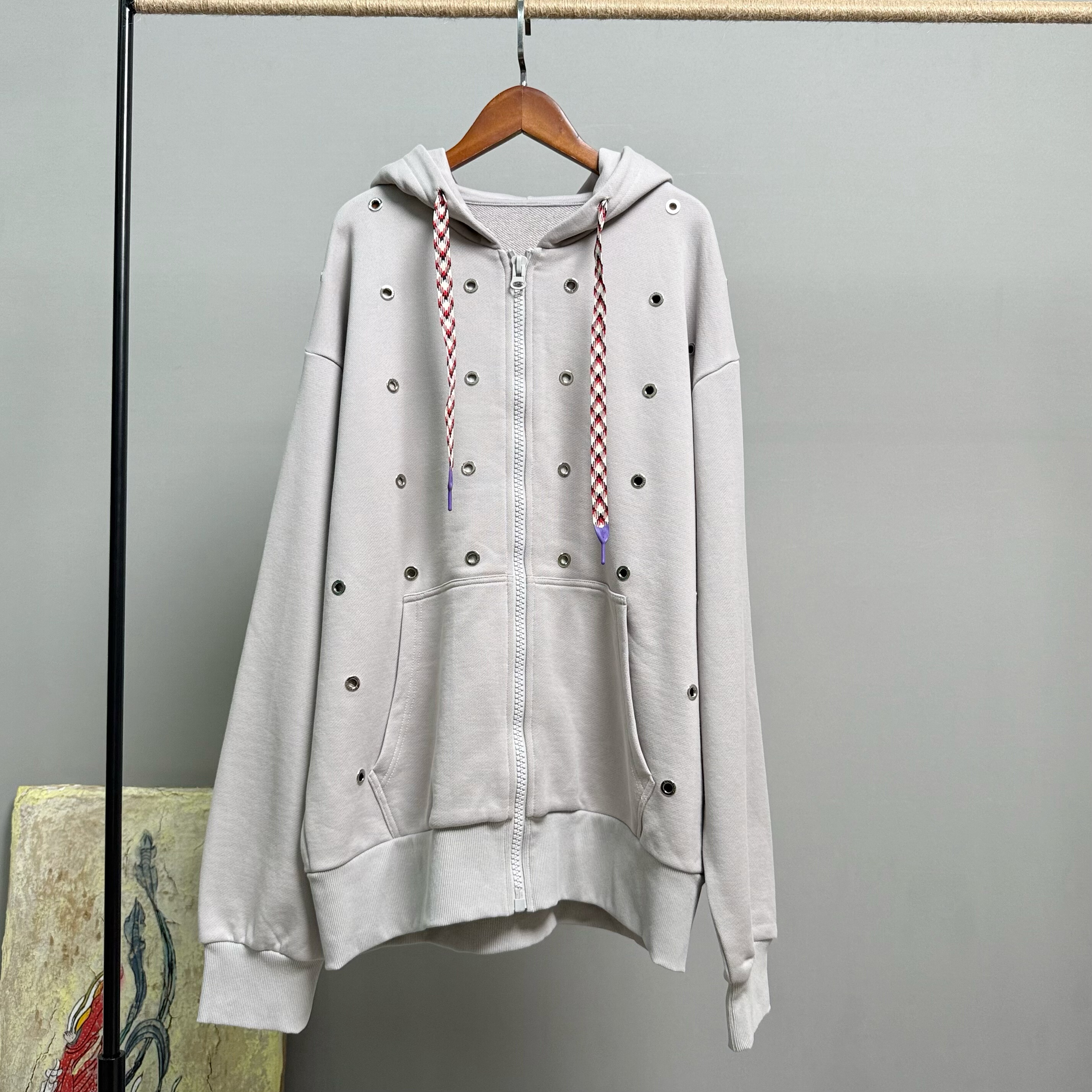 外贸单意大利奢线圈棉质连帽卫衣开衫外套休闲满印短袖上衣男春秋