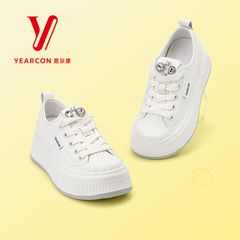 意尔康厚底小白鞋女2025新款休闲板鞋女鞋秋季时尚百搭白色运动鞋