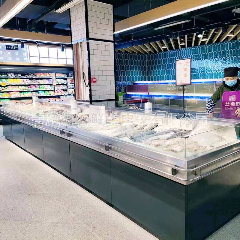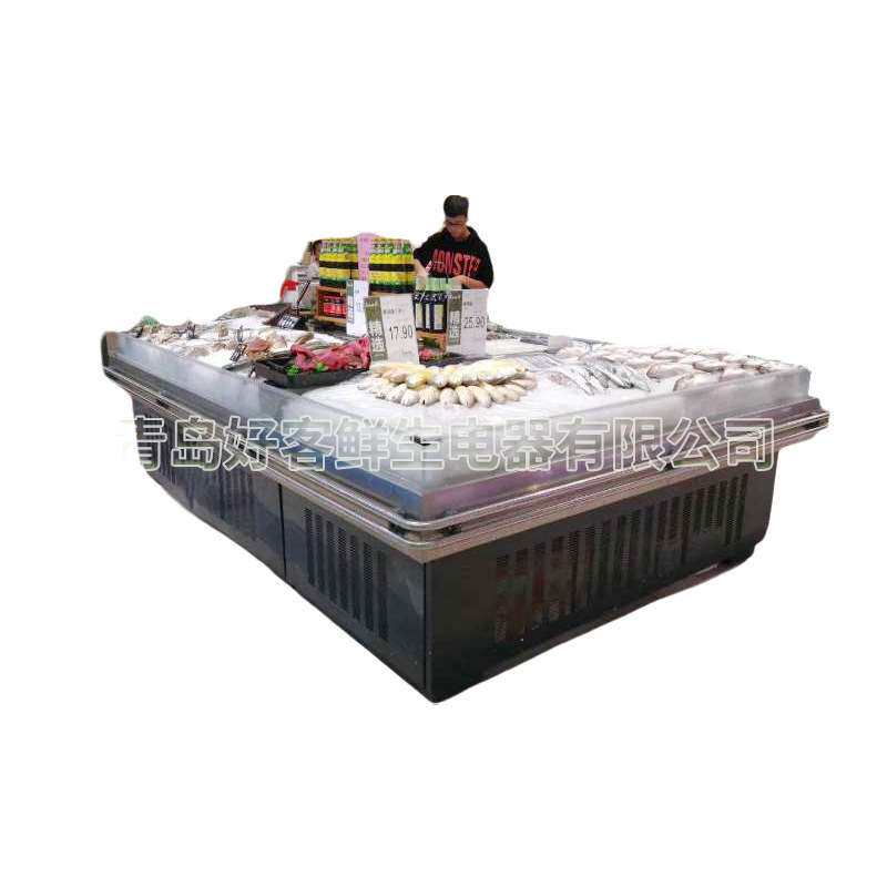 超市环岛款冰鲜台不锈钢保鲜柜海鲜展示柜卖场贝类保鲜展示柜