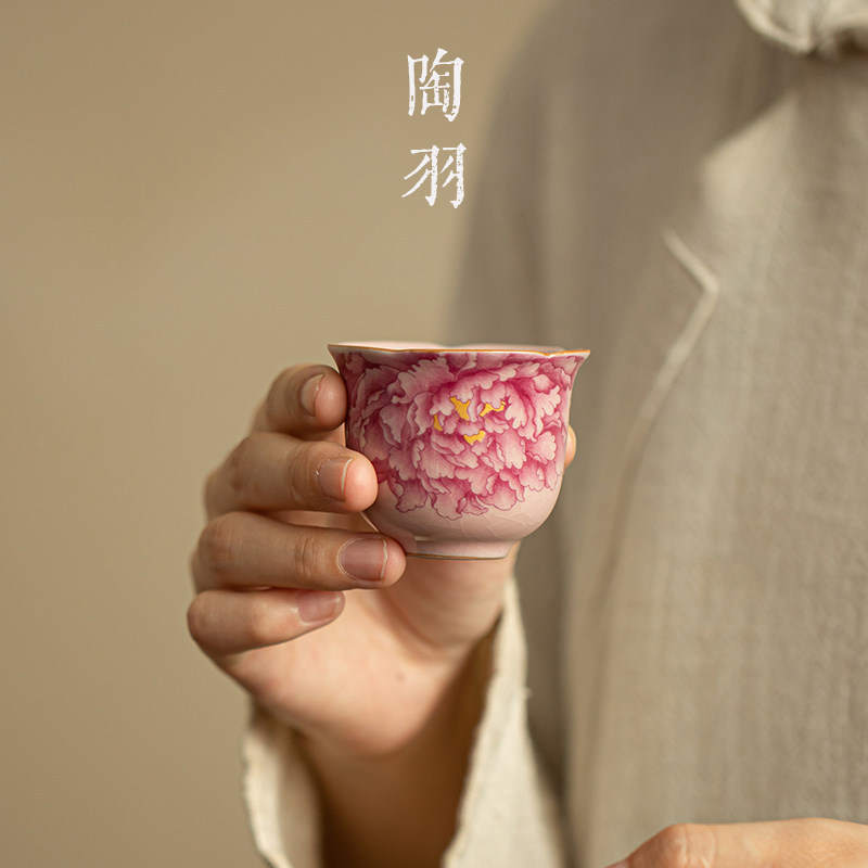 粉色汝窑国色天香小客杯陶瓷茶杯家用主人杯单杯个人专用茶具茶盏
