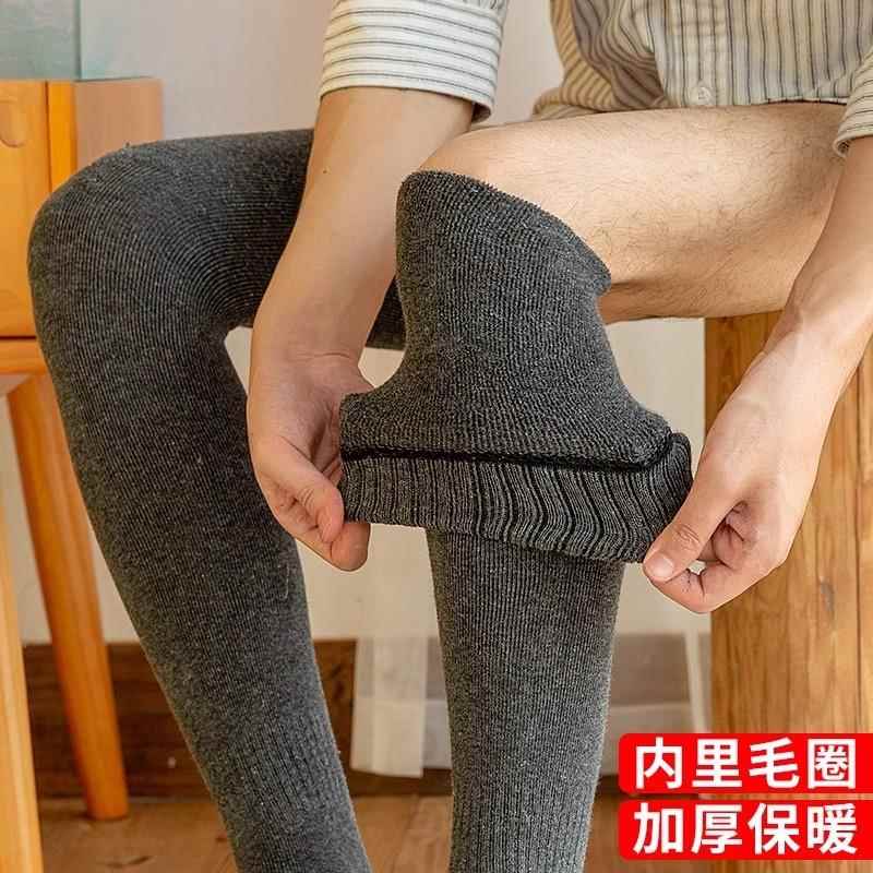 长筒袜男士过膝盖袜加绒加厚保暖护膝袜套中老年裤袜男高筒大腿袜