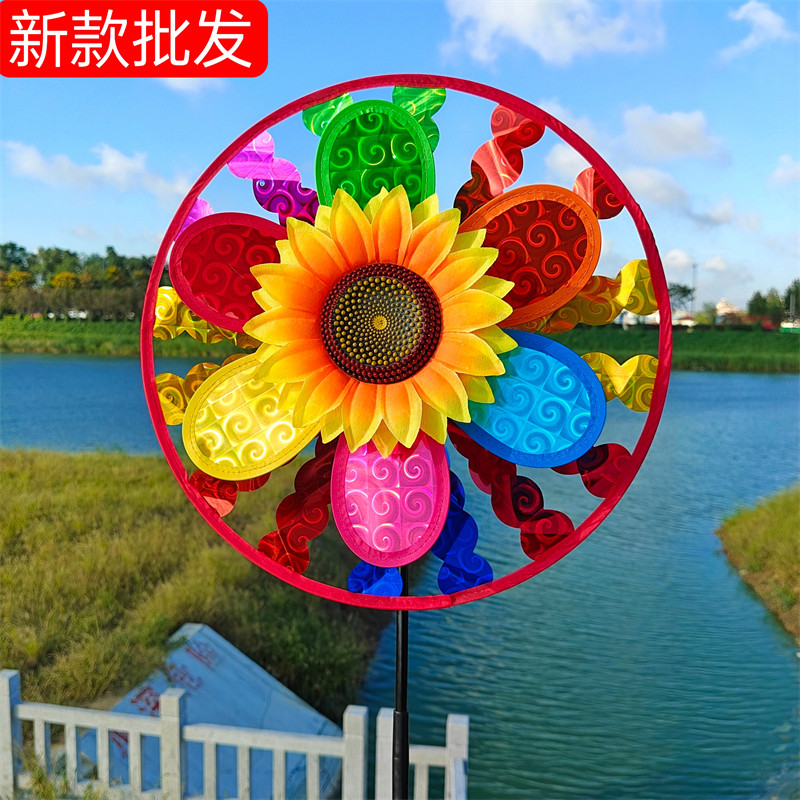 10个旋转新款热卖七彩玩具套地摊儿童户外地推礼品装饰向日葵风车