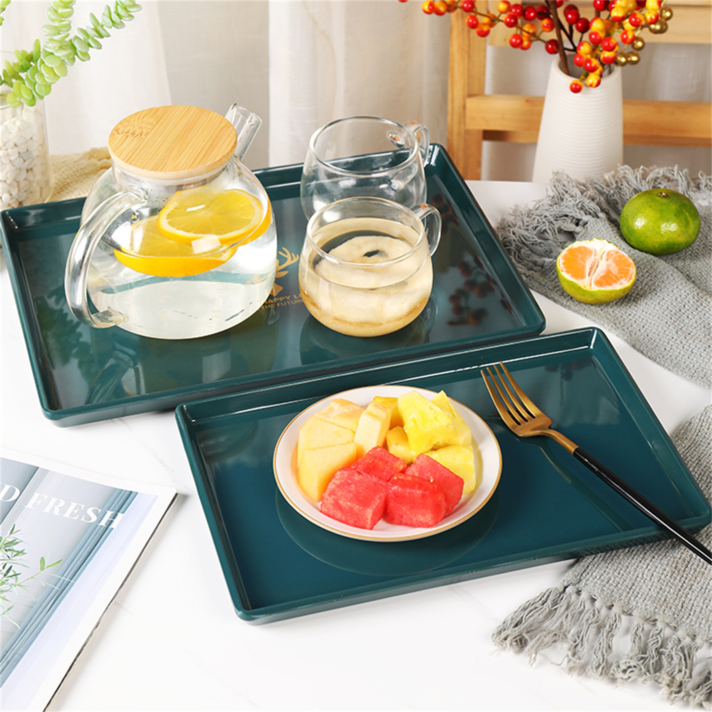 塑料茶杯托盘长方形家用客厅水杯茶盘北欧轻奢果盘杯子收纳盘子