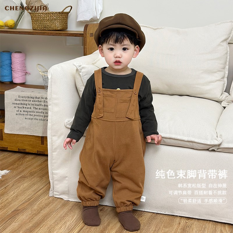 婴幼儿春秋季背带裤套装男宝宝卡通长袖T恤女童洋气连体裤打底衫