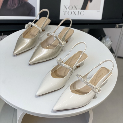 包头凉鞋女2025新款夏季法式绝美配裙子高跟鞋尖头细跟后绊带单鞋