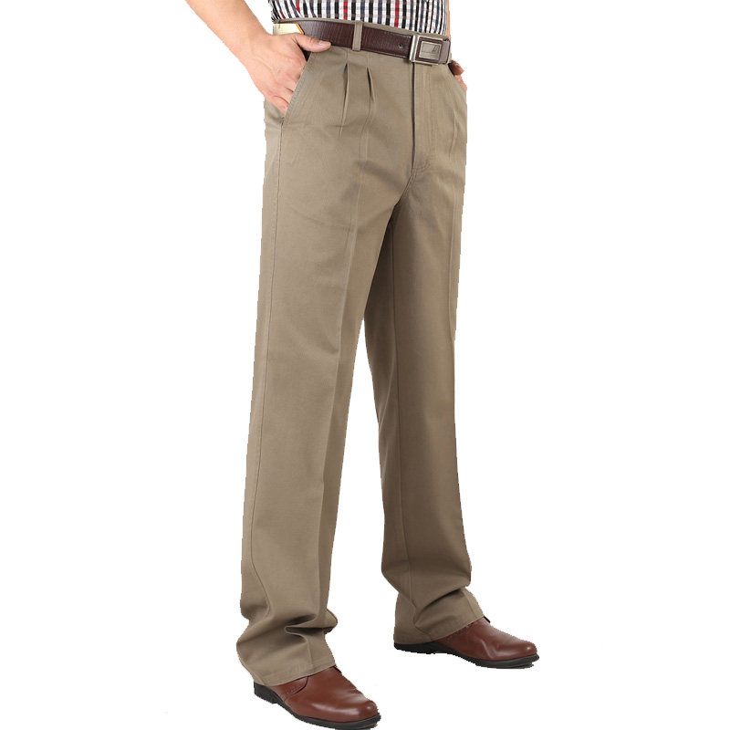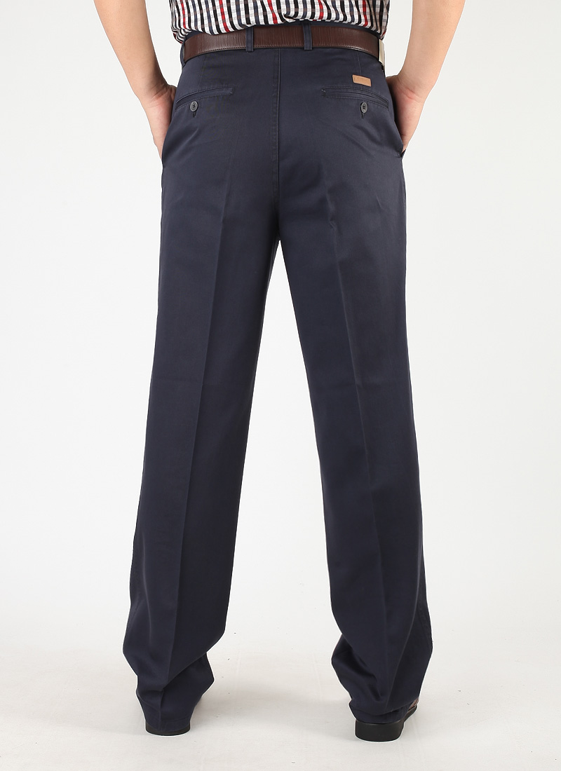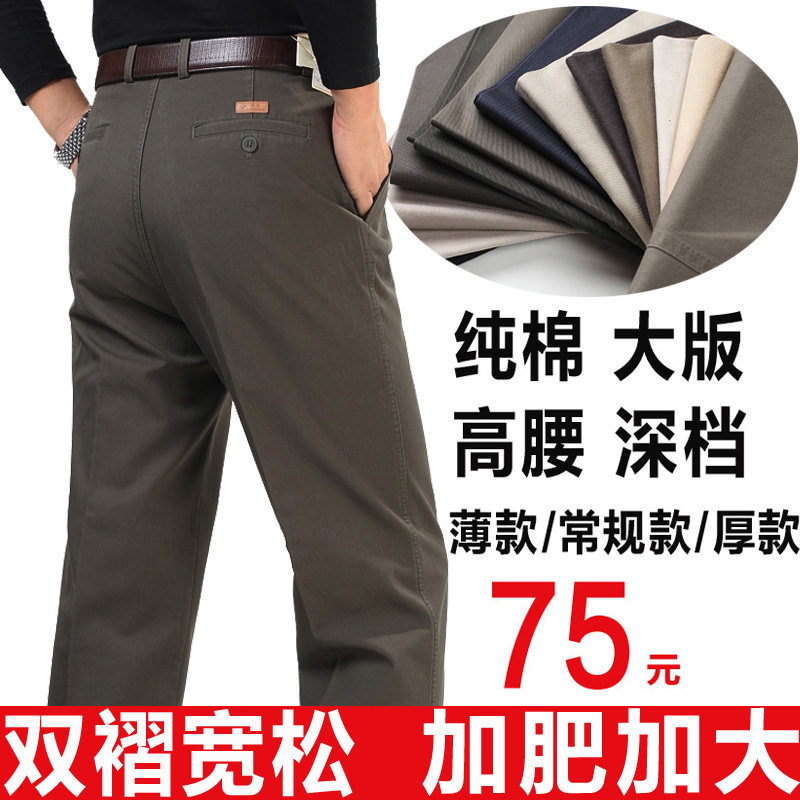 中老年男裤高腰深档双褶宽松纯棉爸爸装胖人肥佬加肥加大码休闲裤