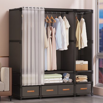 单人简易衣柜卧室省空间宿舍衣服收纳架出租房网红组装挂衣整体橱
