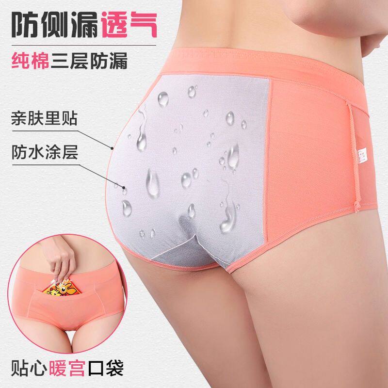 大码生理裤女纯棉透气抗菌生理期防漏月事经期姨妈裤中腰生理内裤