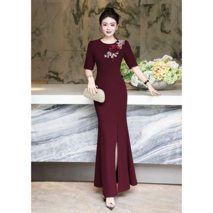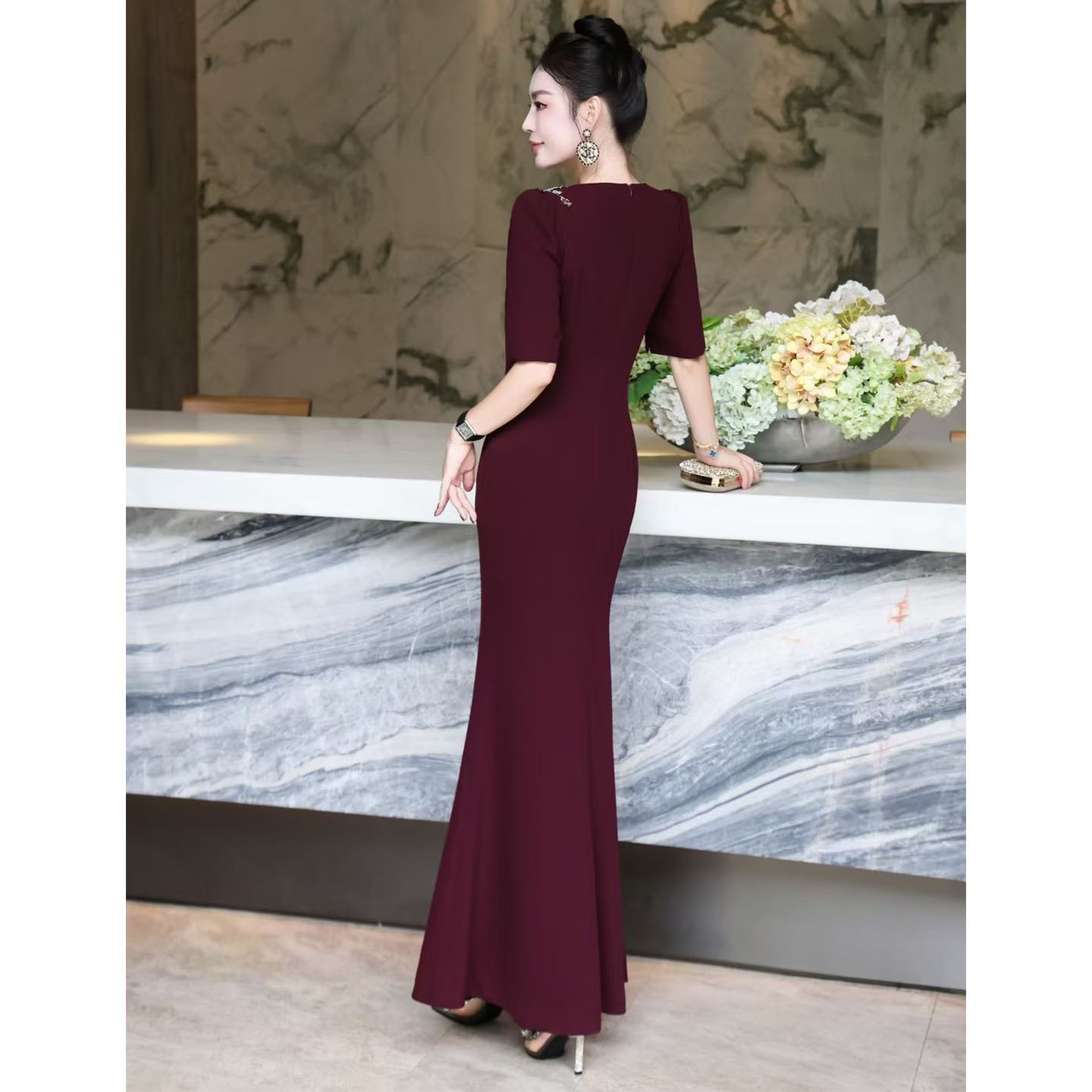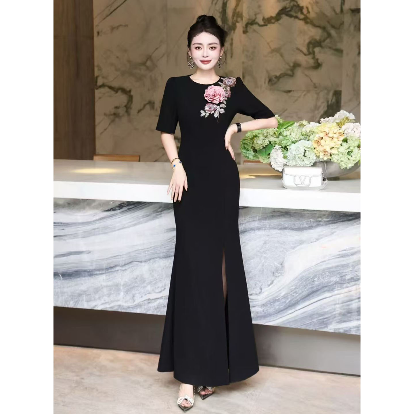 2025年秋季新款时尚气质女装设计感订钻礼服长裙连衣裙高级感婚礼