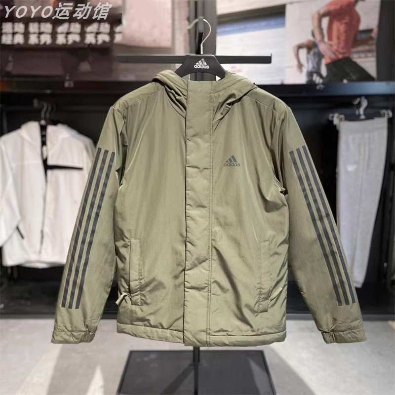 阿迪达斯棉服男2024冬季新款户外保暖防风连帽运动夹克正品HZ5725