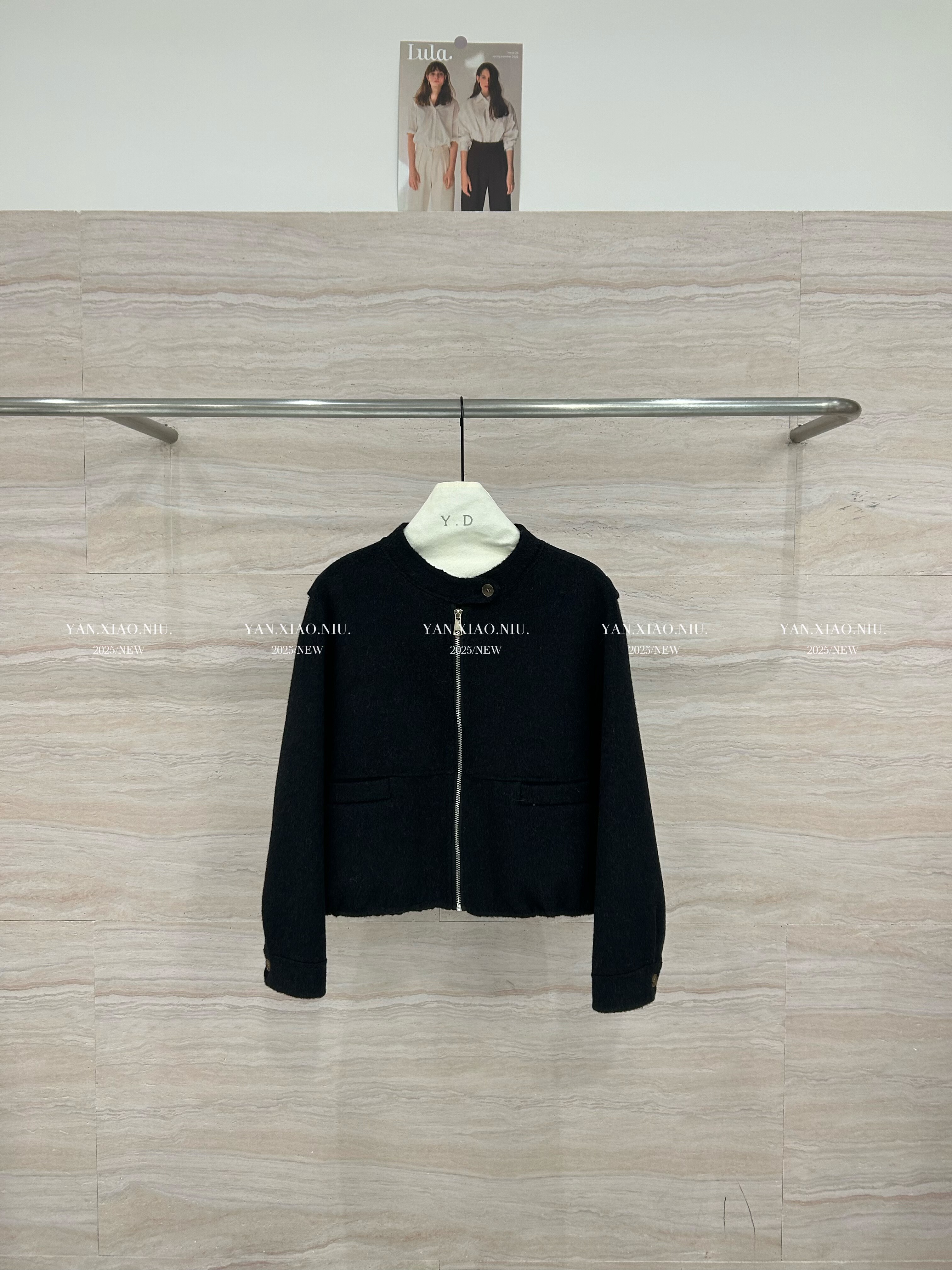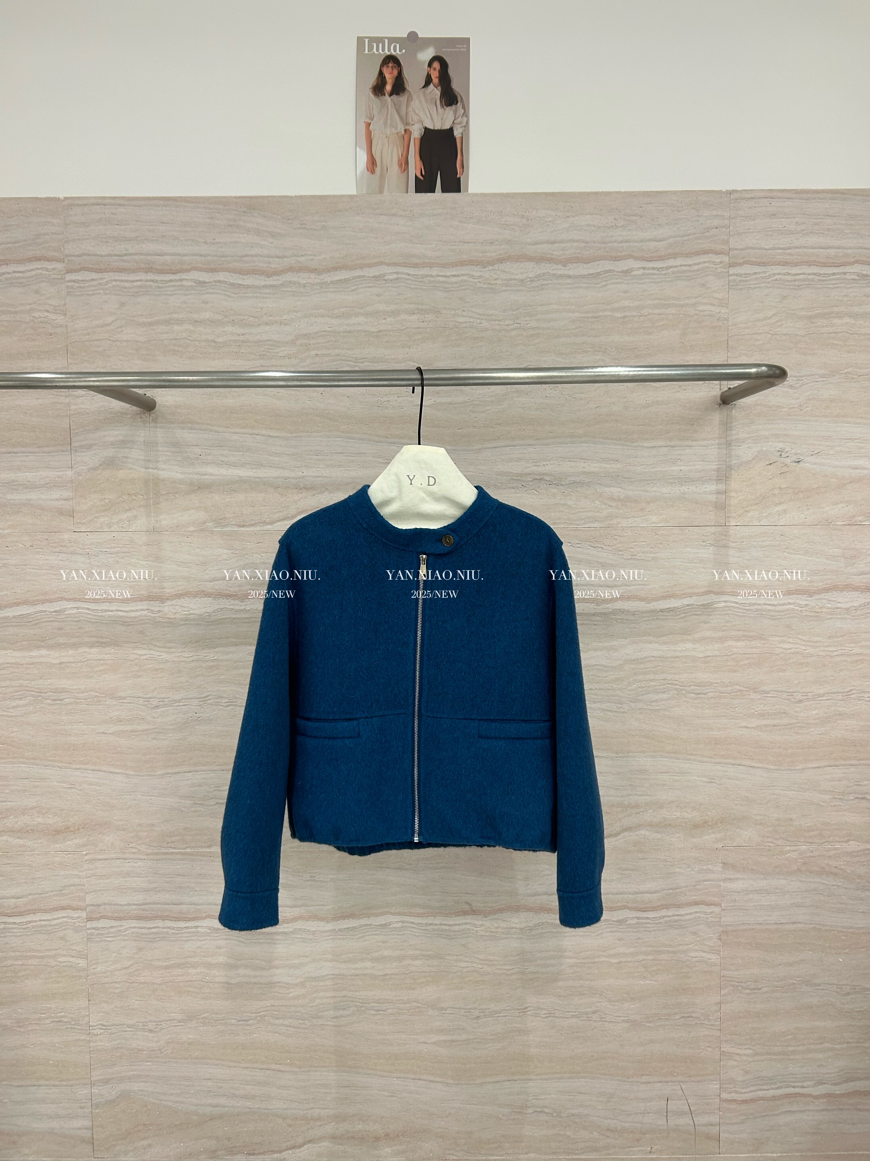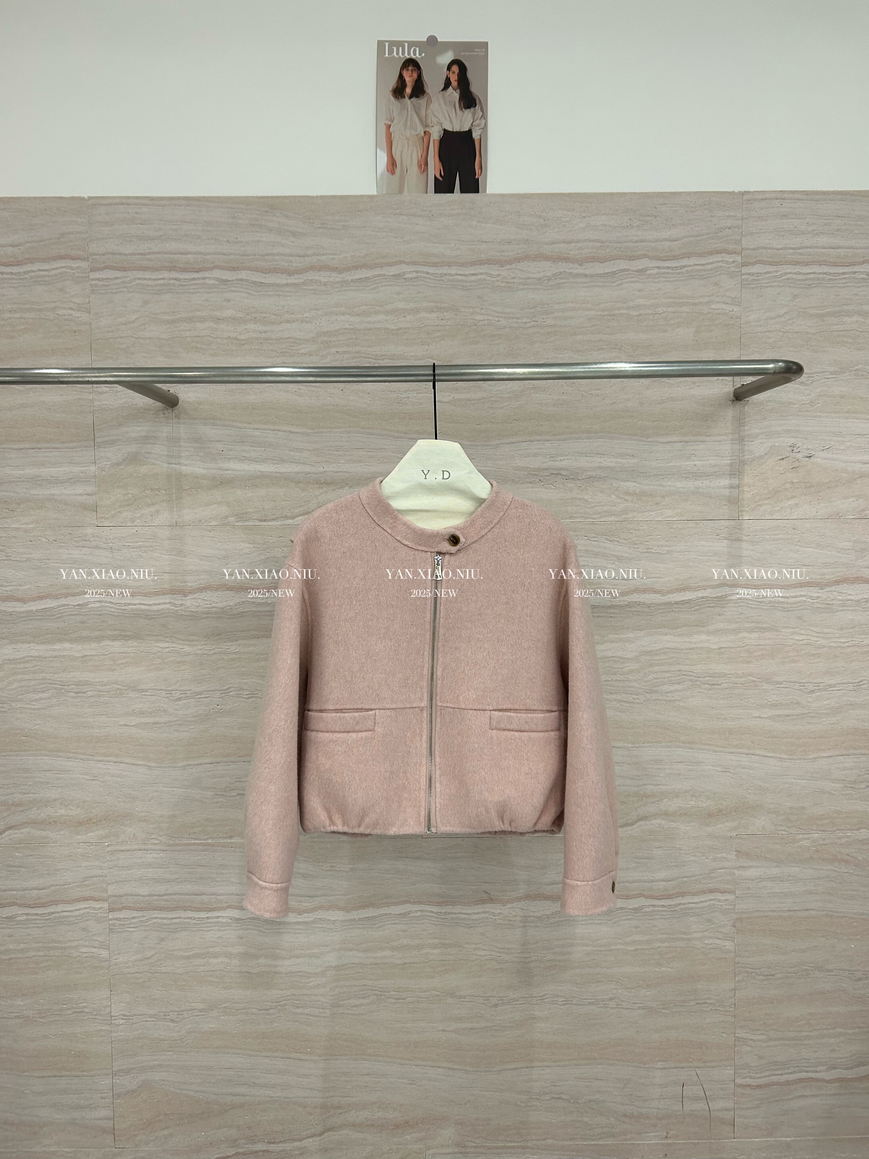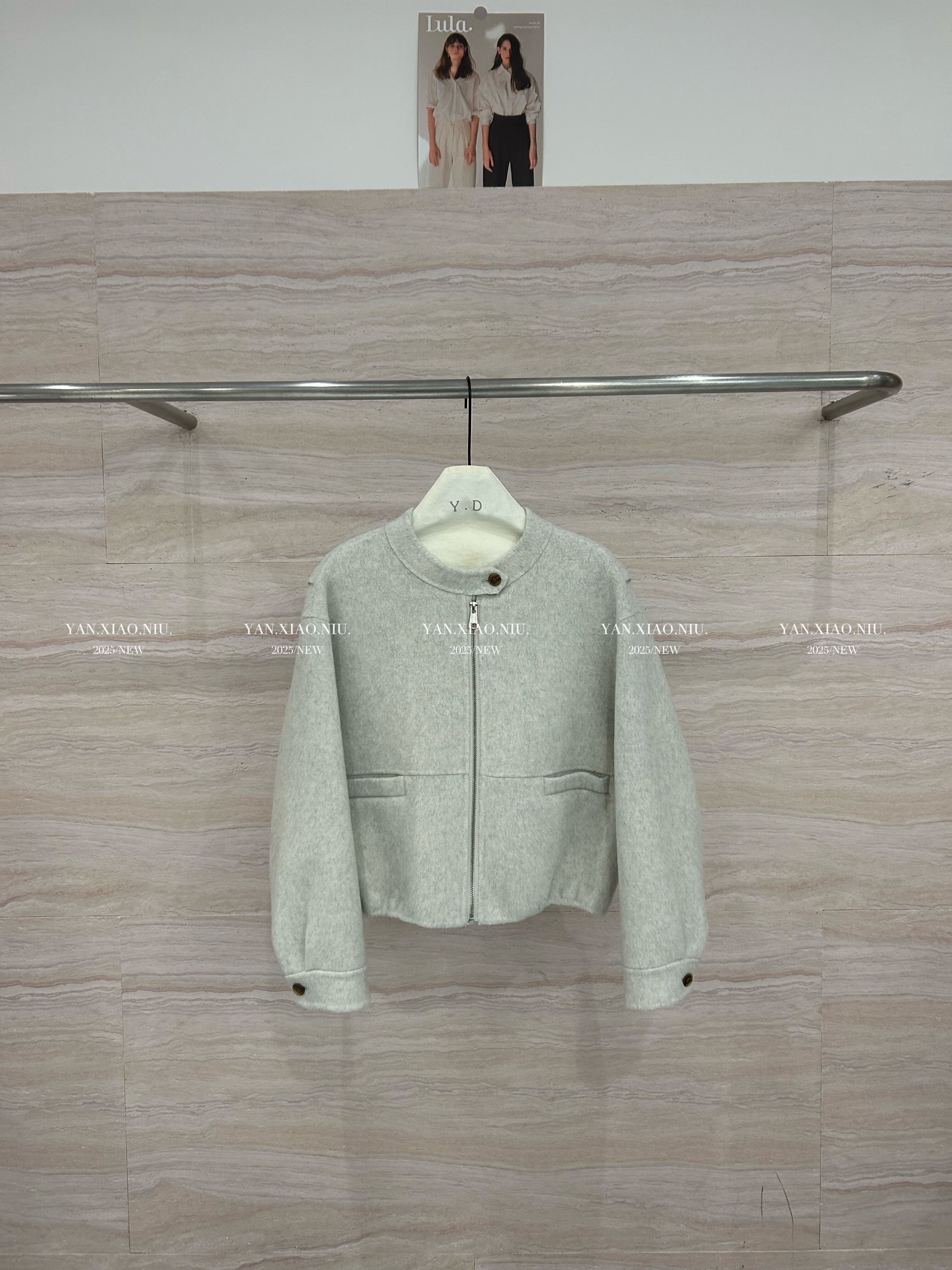 611-2 韩版圆领短款双面羊毛大衣女秋冬街头机车风格百搭毛呢外套