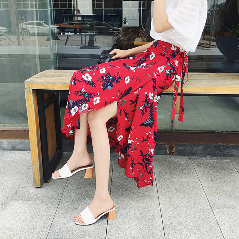 雪纺半身裙女夏装2024新款复古高腰波点一片式裹裙中长款沙滩长裙