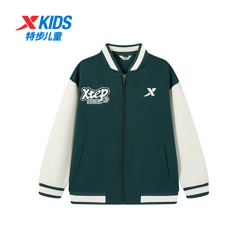 【商场同款】特步童装男童春季新款男童休闲针织外套中大童棒球服