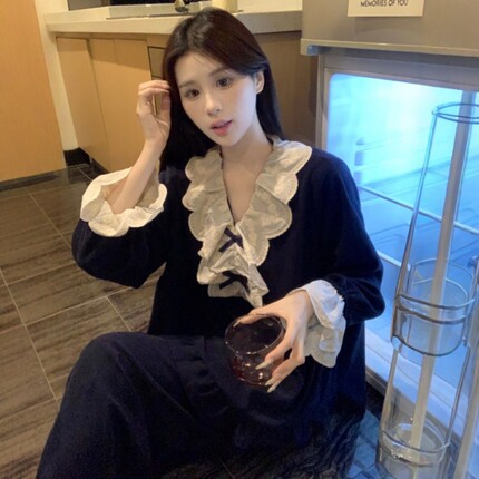 大码女装胖mm宫廷风蕾丝睡衣套装