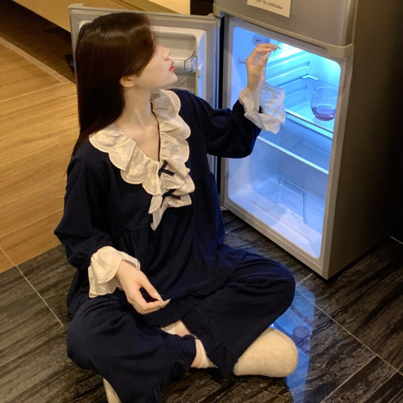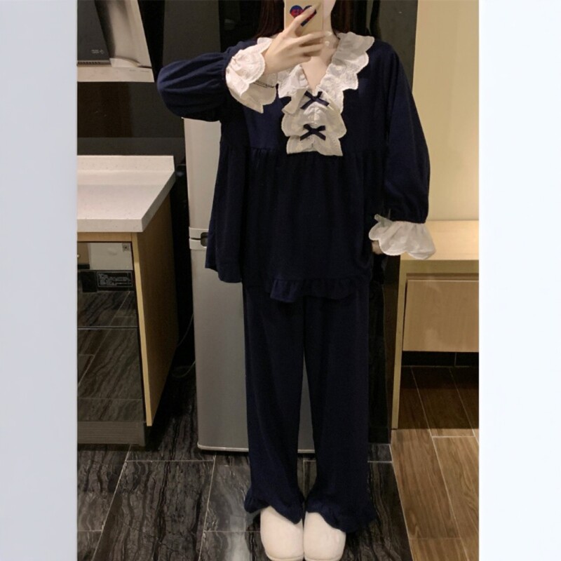 大码女装胖mm宫廷风蕾丝花边可外穿睡衣春夏季甜美可爱家居服套装