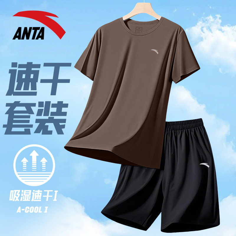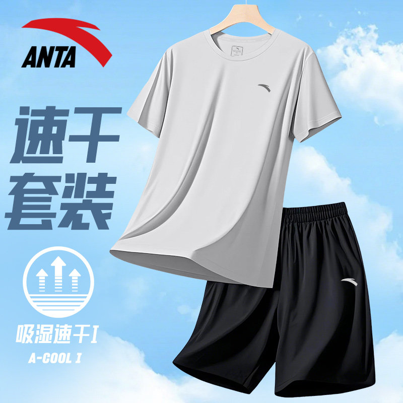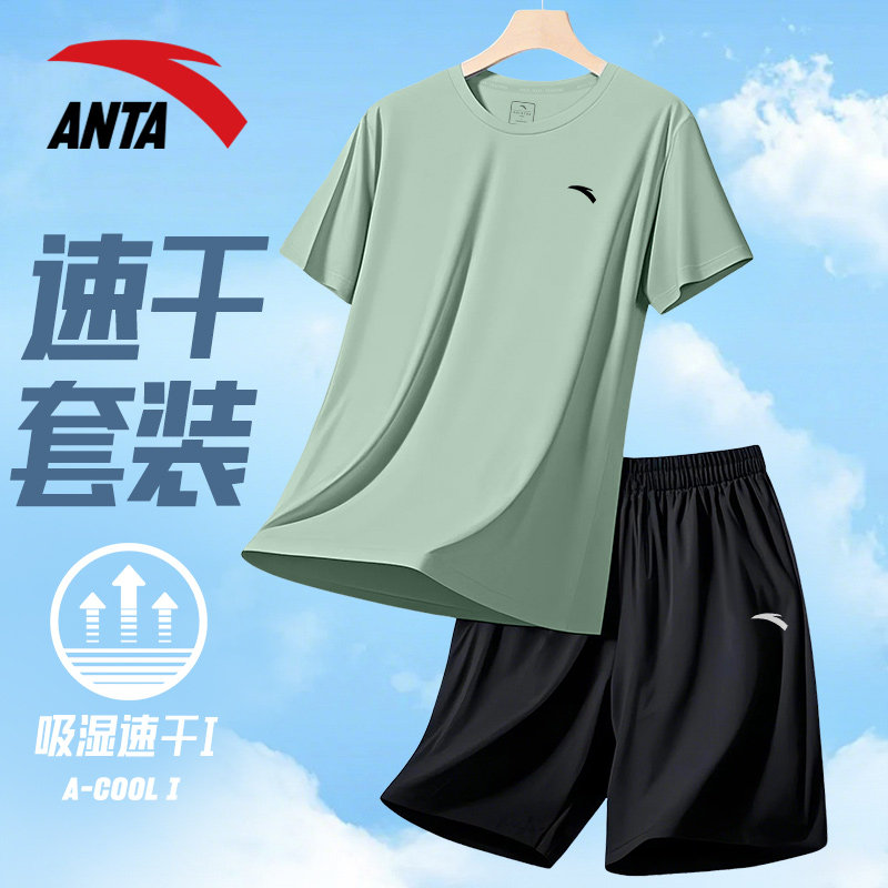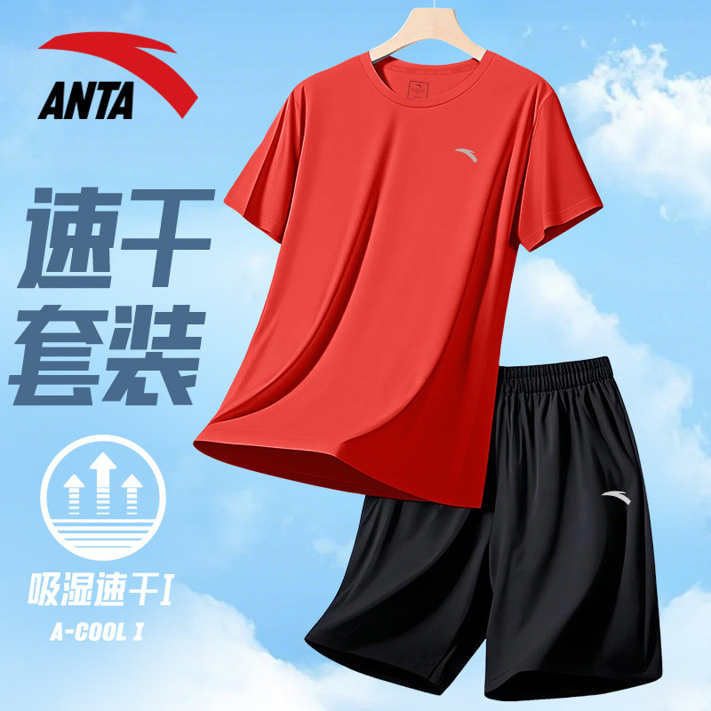 安踏跑步运动套装男款夏季冰丝透气速干短袖T恤短裤运动服两件套