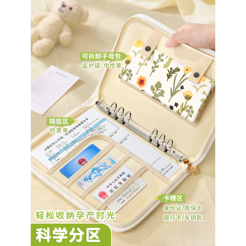日本孕检收纳册折叠便携式收纳袋活页夹a4产检报告单马宝宝检查单