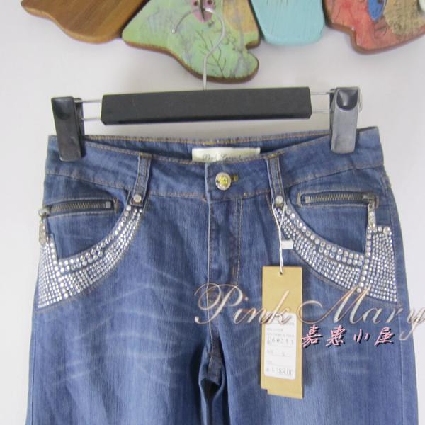 赛典春秋烫钻中腰直筒牛仔裤女裤