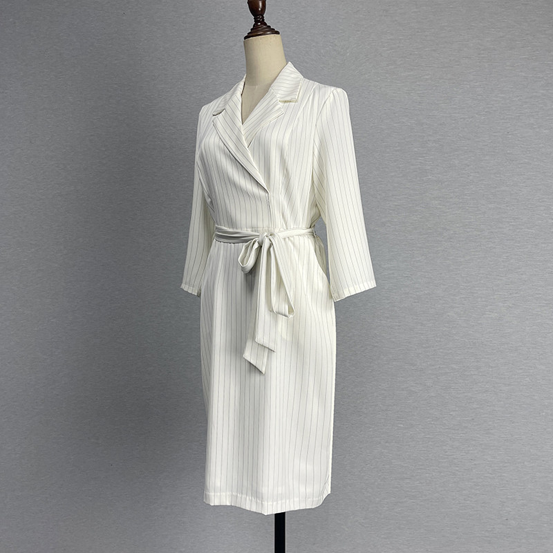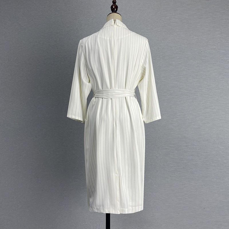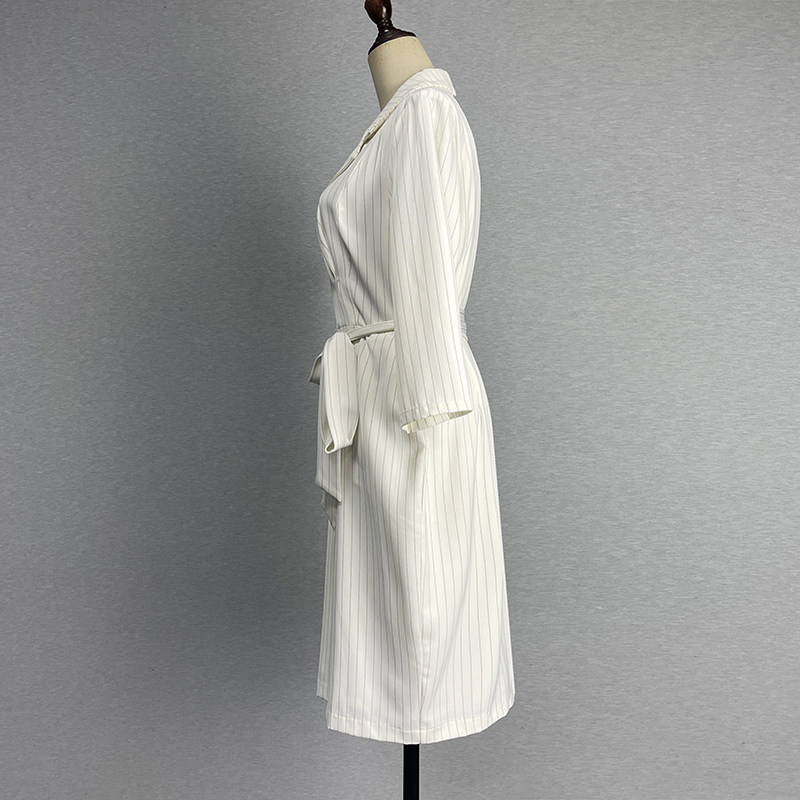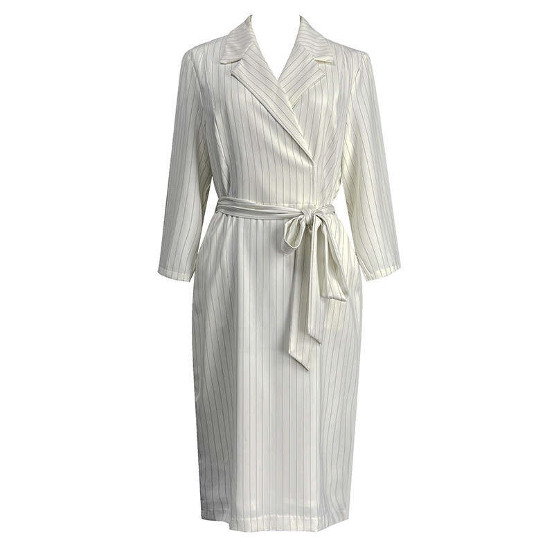 中长款白色条纹七分袖风衣女2025春秋英伦风西装领气质套头外套