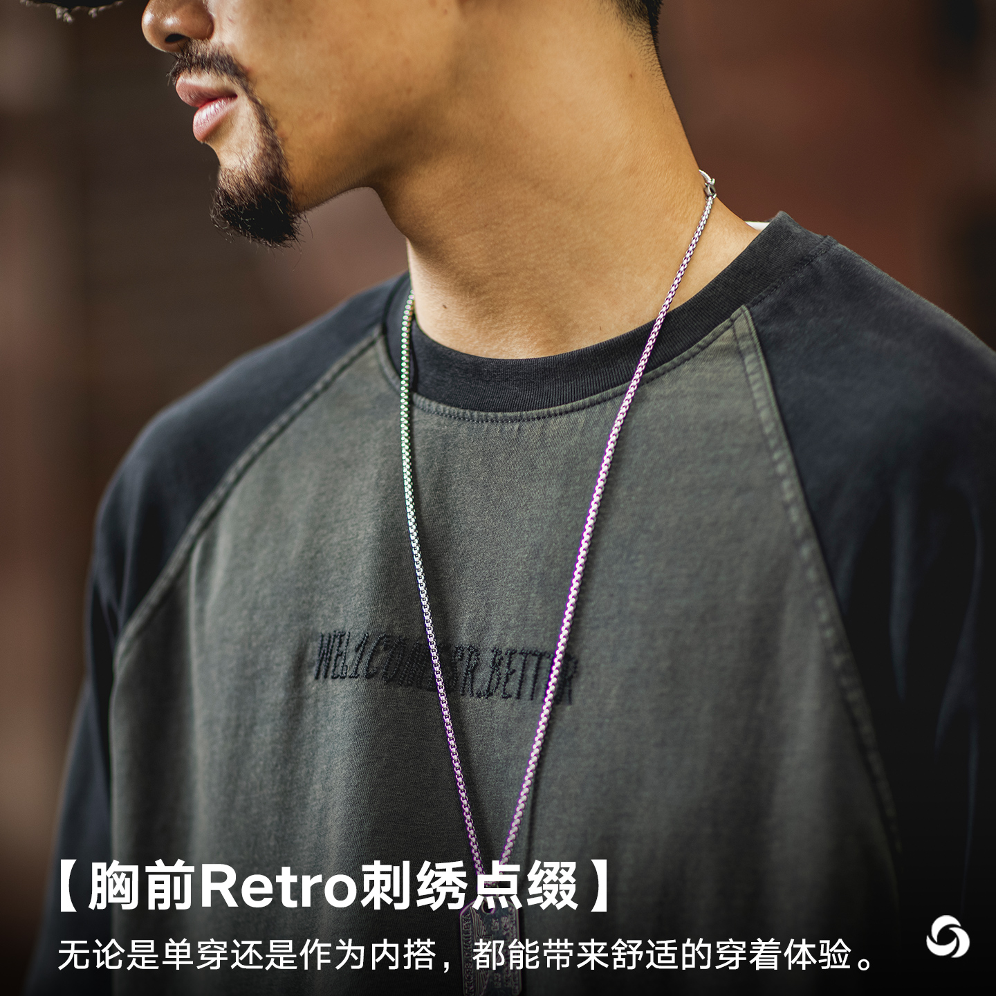 美式复古插肩袖拼色长袖t恤男2025秋季新款水洗纯棉内搭打底衫潮