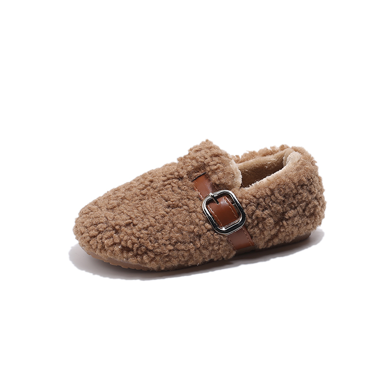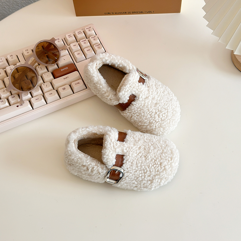 女童毛毛鞋冬季2024新款女孩平底豆豆鞋一脚蹬保暖加绒棉鞋学步鞋