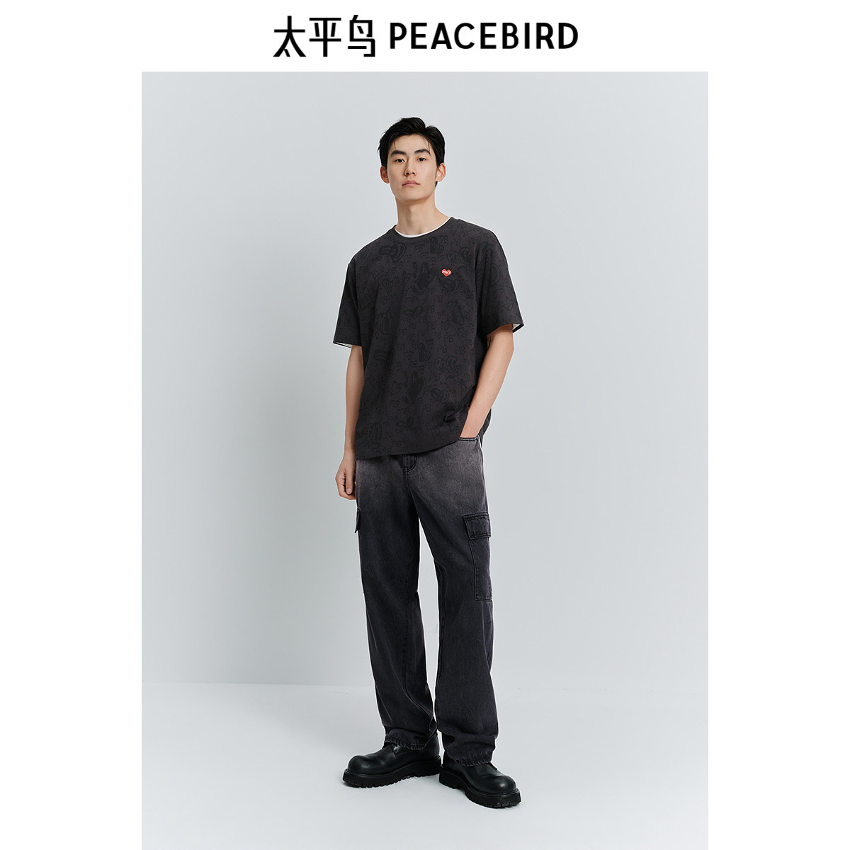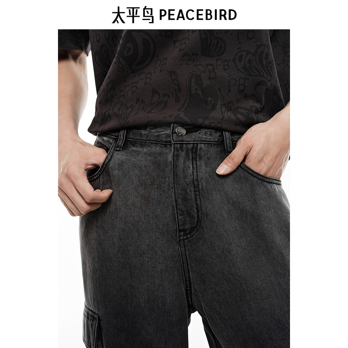 【天丝牛仔】太平鸟男装牛仔裤25春新款直筒工装渐变莱赛尔长裤