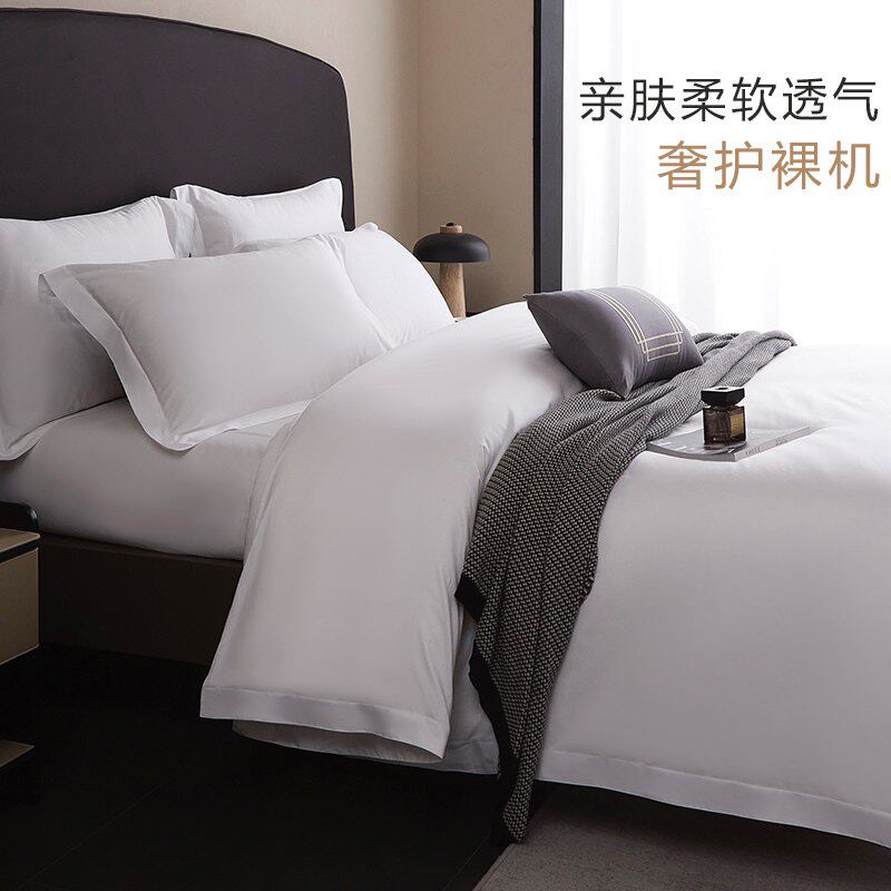 五星级酒店床品四件套宾馆布草纯棉被套全棉民宿白色床单床上用品