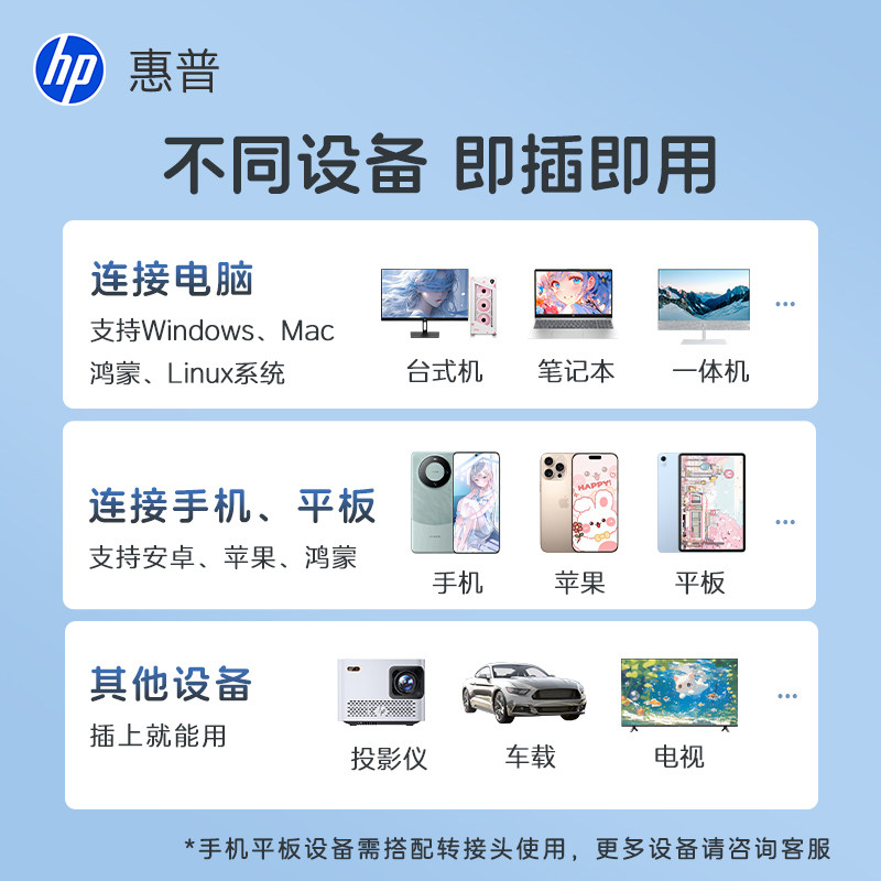 惠普大容量128g创意U盘女学生手机电脑两用办公优盘正品官方旗舰