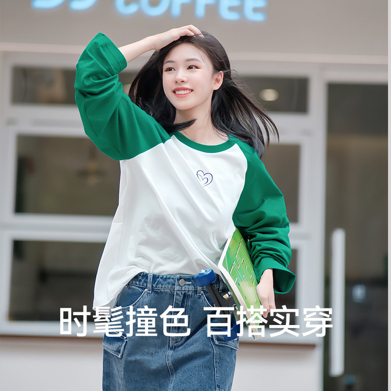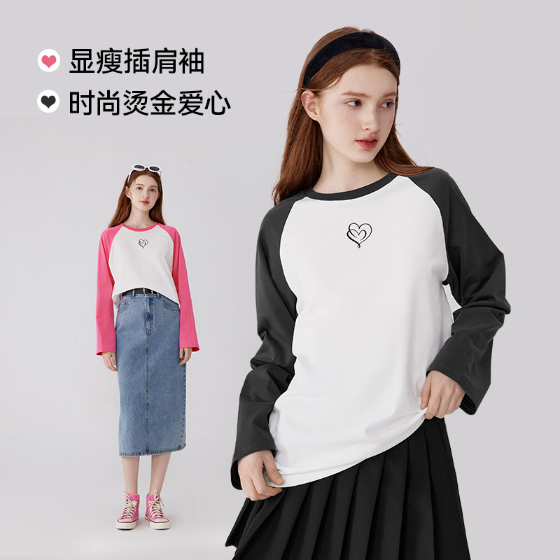 诗凡黎插肩袖T恤2023年夏新款正肩洋气设计感小众美式长袖上衣女