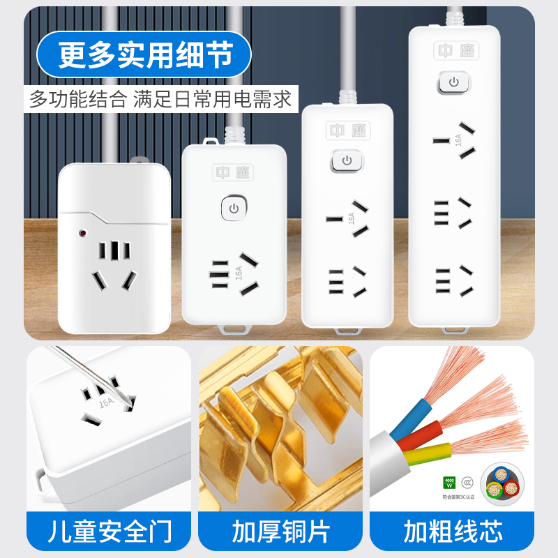 10a转16a插座大功率空调热水器16安电源转换器延长拖线板插排带线