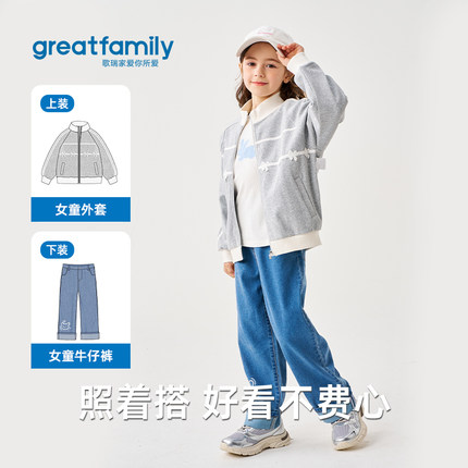 歌瑞家女童外套2025秋新款时尚拼接休闲百搭儿童韩版卫衣棒球服