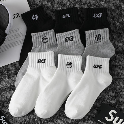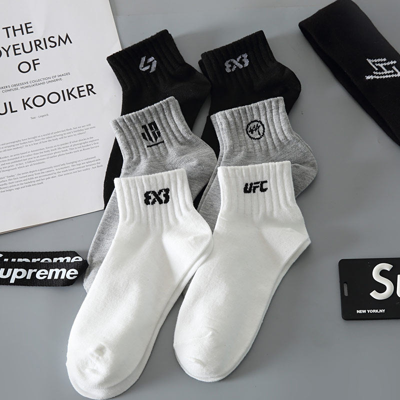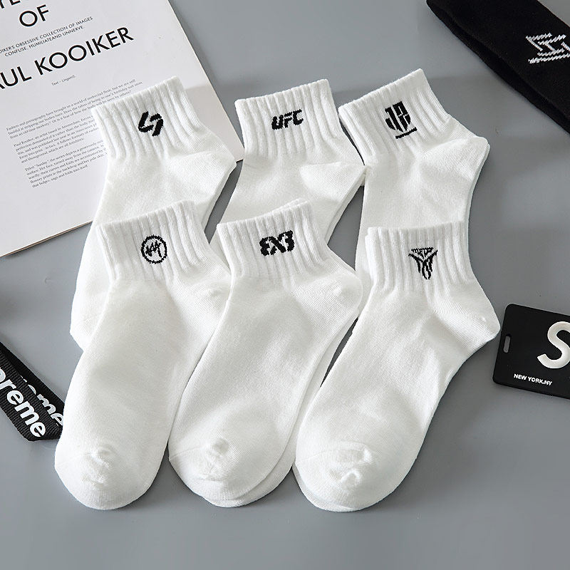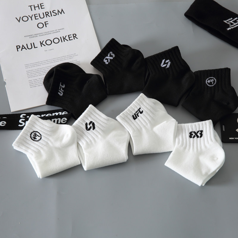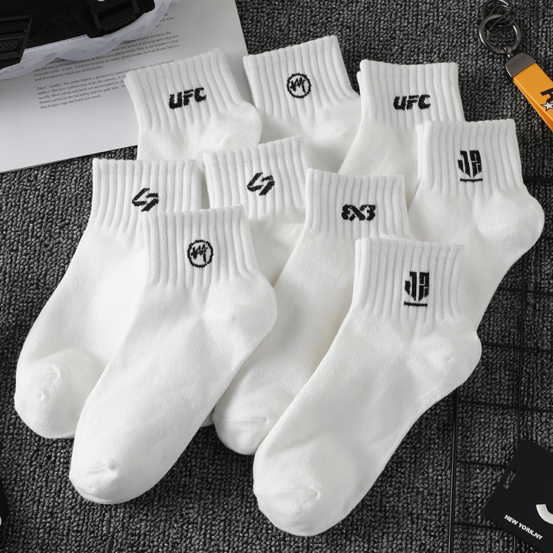 白色中短筒男士袜子中筒袜黑色女夏款篮球袜纯棉防臭女中筒袜男款