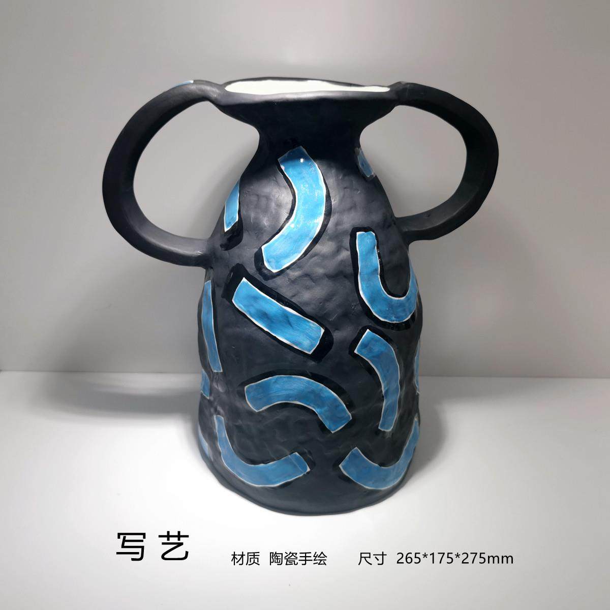 手工彩绘艺术陶瓷花器摆件北欧现代客餐厅书房儿童房家居软装饰品
