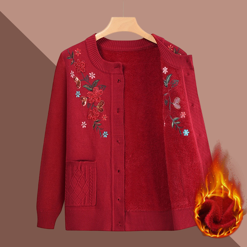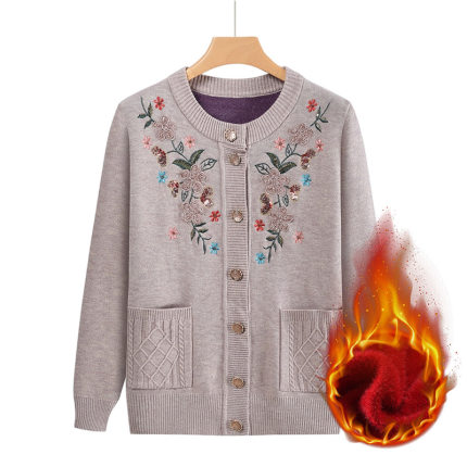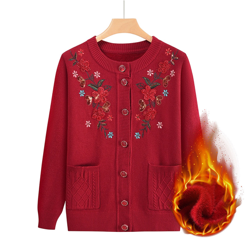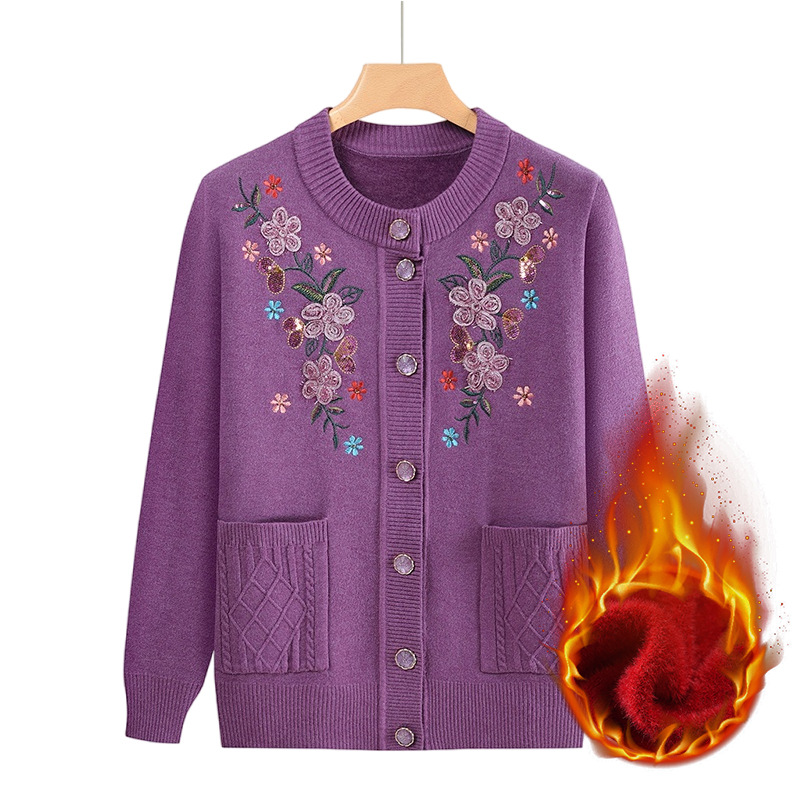 源头工厂中老年人秋冬装毛衣奶奶加绒外套女妈妈针织衫老太太衣服