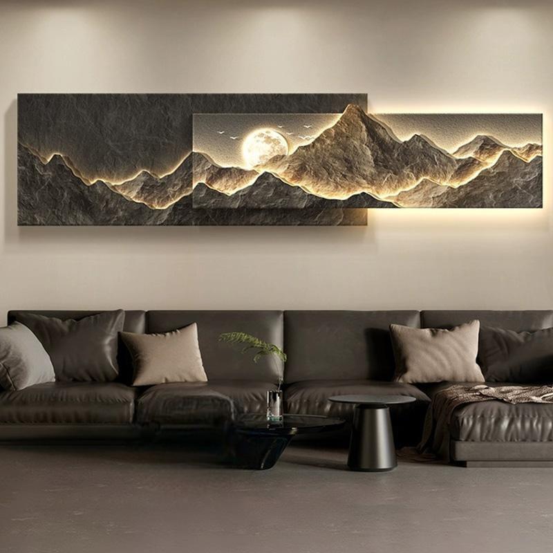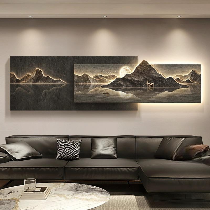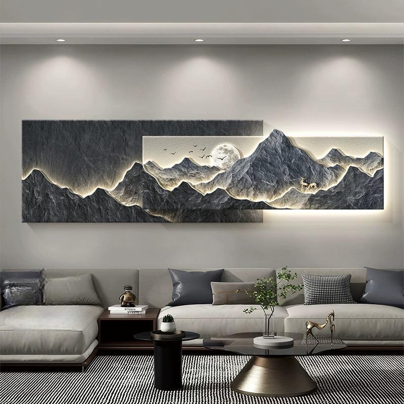 背有靠山客厅装饰画现代轻奢沙发背景墙挂画高级感立体感山水壁画