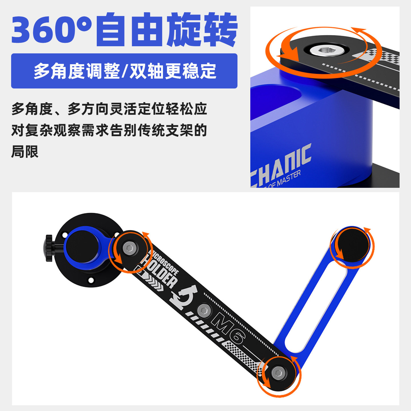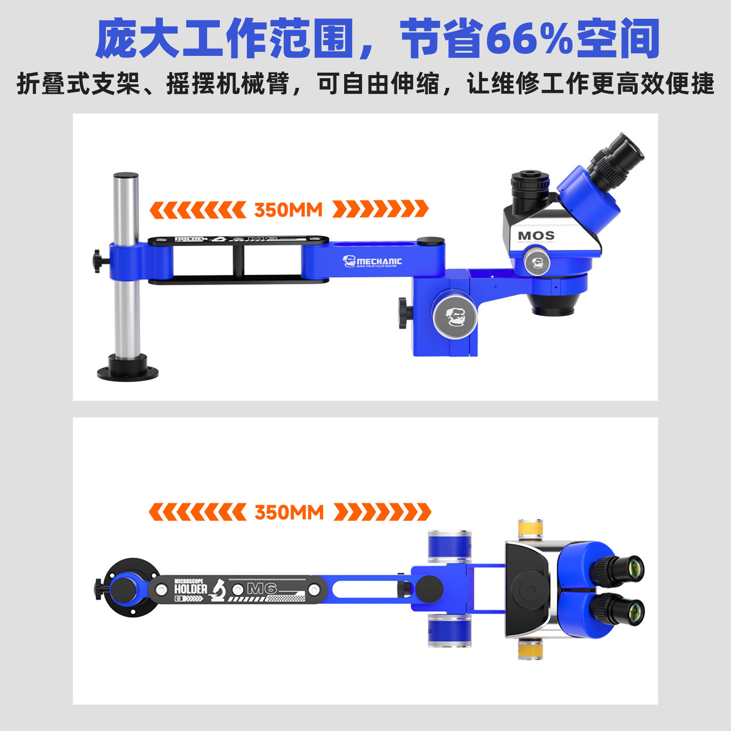 维修佬M6显微镜摆臂支架承重强顺滑升降万向360度旋转固定显微镜
