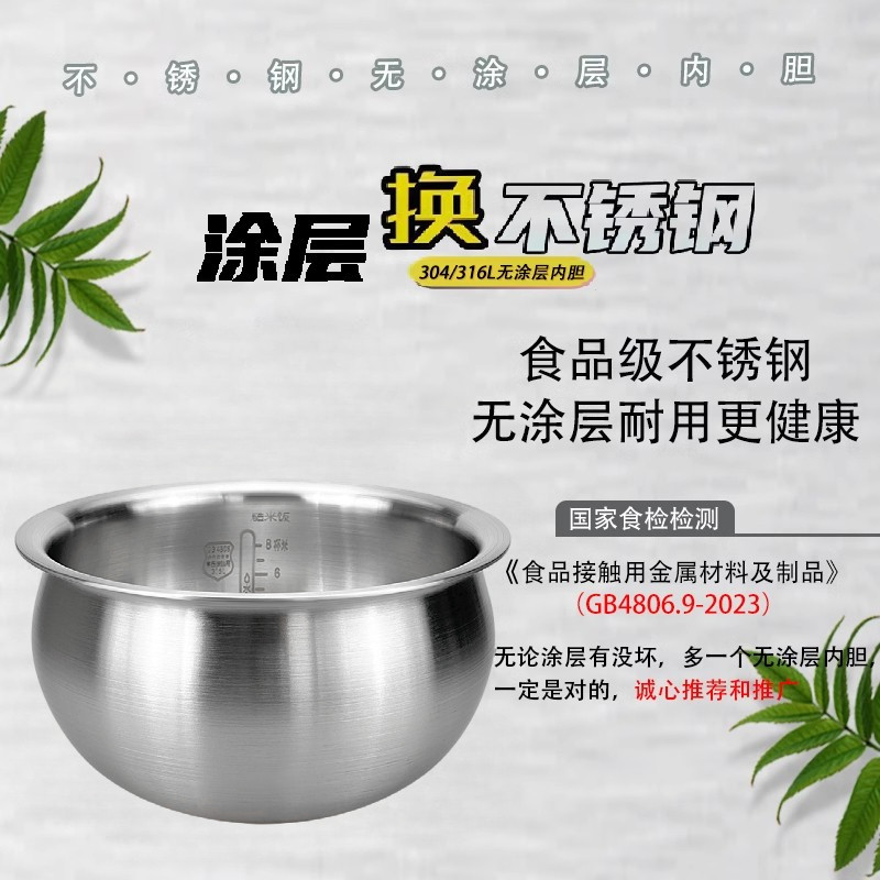 适配苏泊尔电饭煲内胆316L/304不锈钢3L4L5L升球釜精铁防粘蜂窝