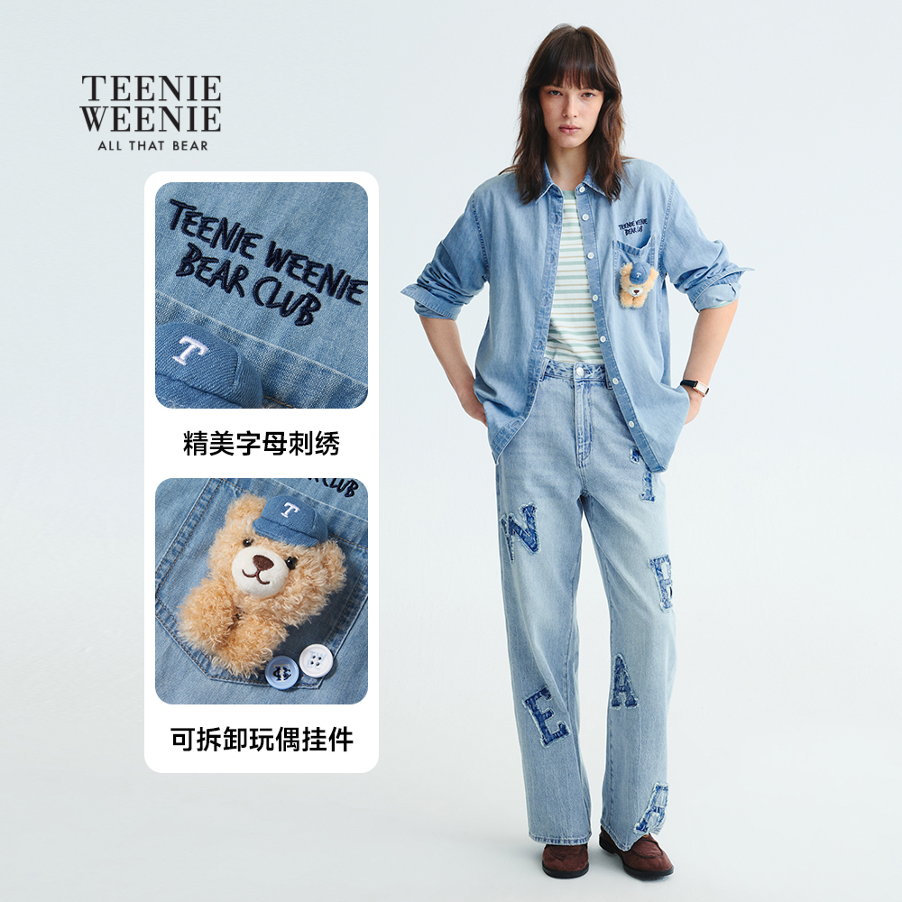 TeenieWeenie小熊女装衬衫2025秋季新款时髦复古宽松刺绣牛仔上衣