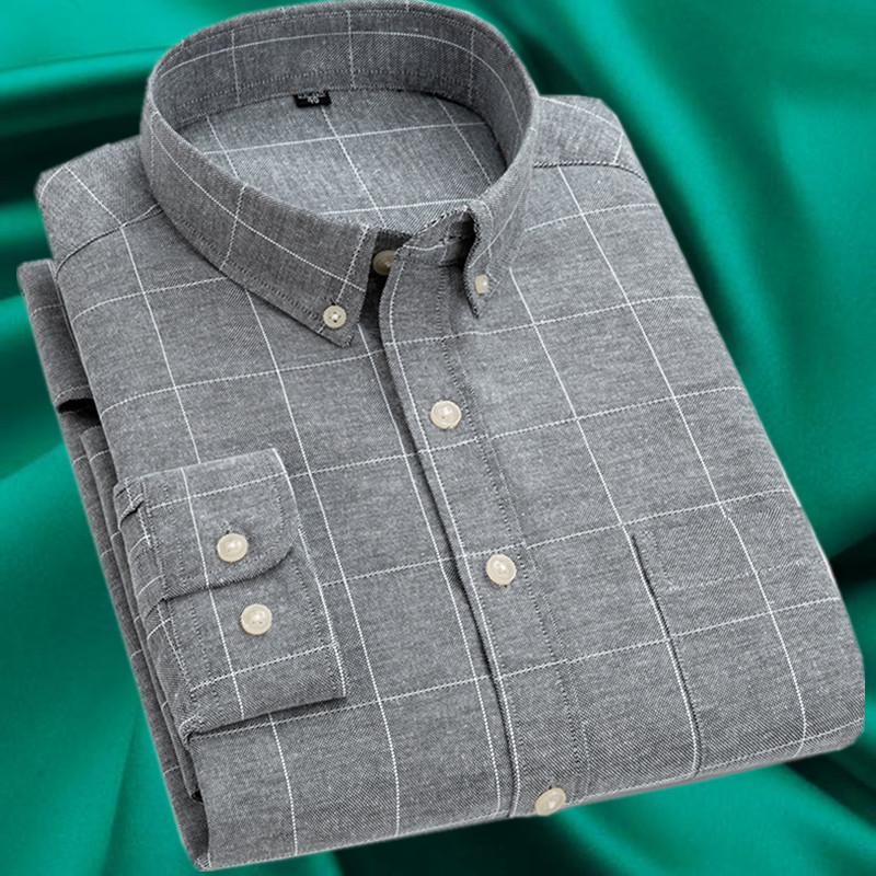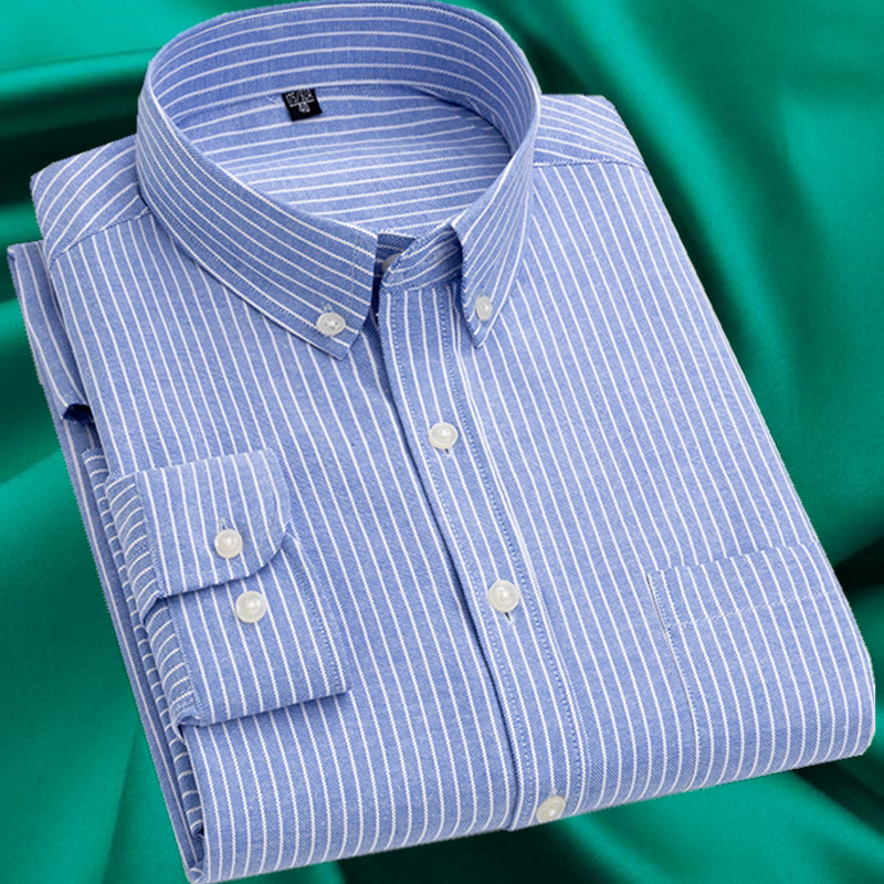 中老年百搭牛津纺衬衫男长袖爸爸装春秋薄款男士寸衫宽松父亲衬衣