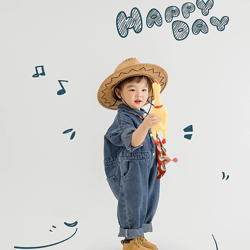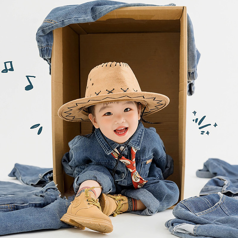 儿童摄影服装影楼西部牛仔主题男童5-6岁连体套装新款拍照艺术照